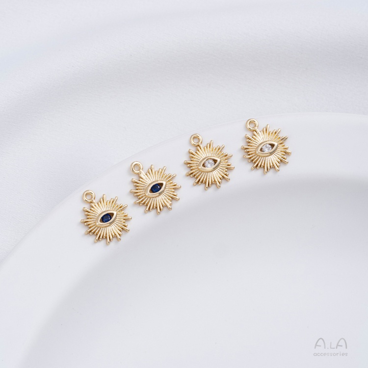 宏雲Hongyun-Ala– 保色14K包金鑲鋯惡魔之眼吊墜手工耳扣手鍊diy太陽眼睛飾品小掛件透白锆眼睛吊坠 1个|宝蓝锆眼睛吊坠 1个Charms, Pendants & OrnamentsHongYun飾品配件批發零售