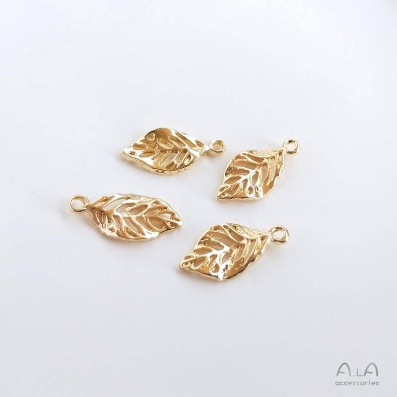 宏雲Hongyun-Ala新品-14K包金保色配件鏤空立體樹葉吊墜diy手工製作手鏈首飾品掛件耳墜A款鏤空樹葉吊墜1個|B款鏤空樹葉吊墜1個HongYun飾品配件批發零售
