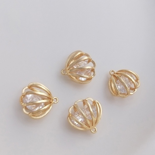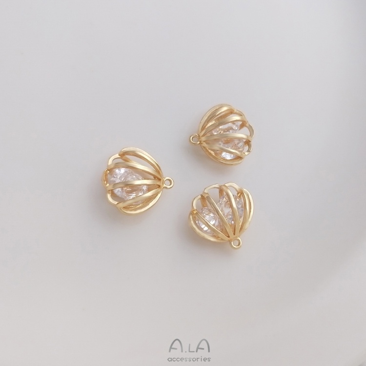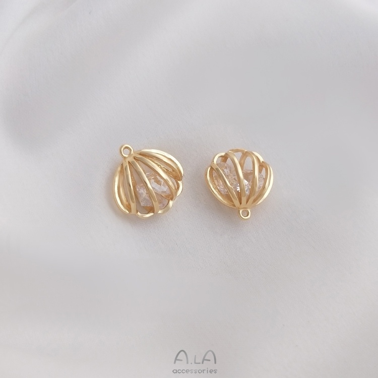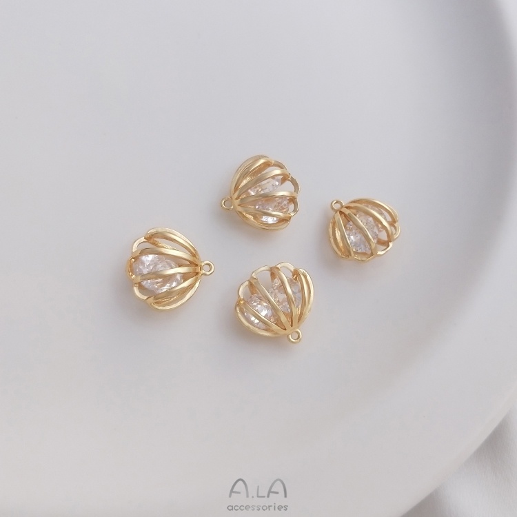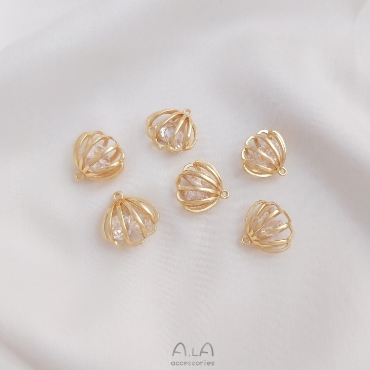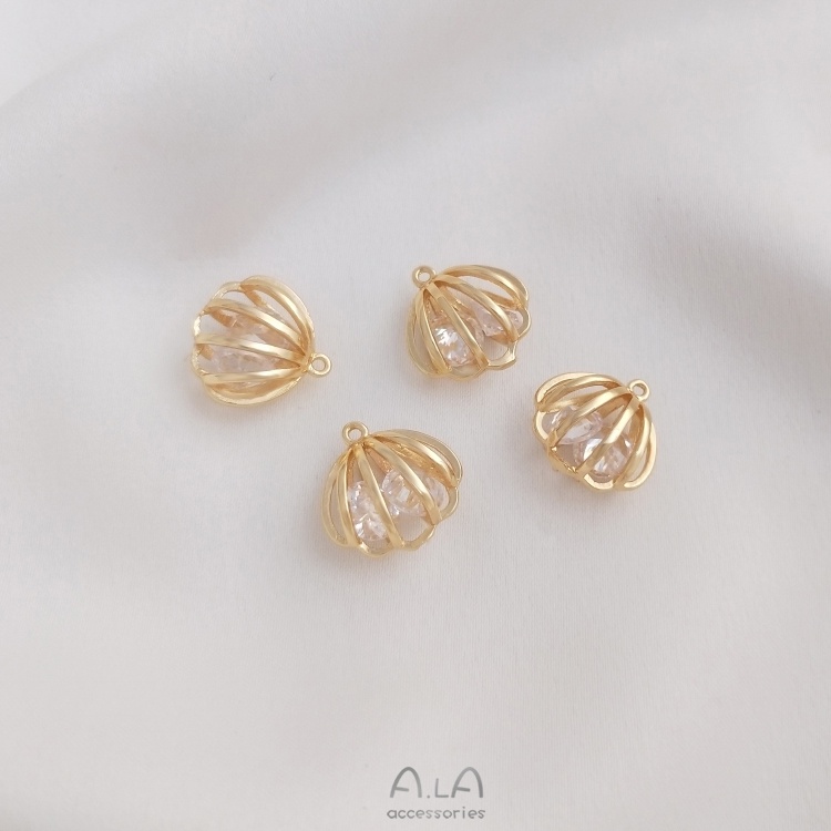 宏雲Hongyun-Ala-0801–14K包金保色內裝鋯石靈動貝殼形掛件扇貝形吊墜diy手鏈耳環吊飾