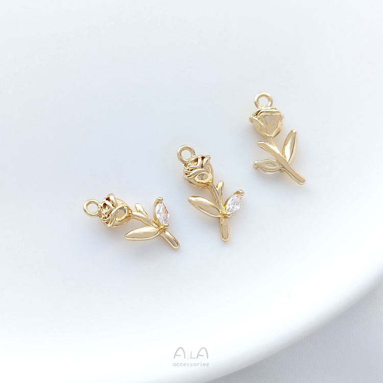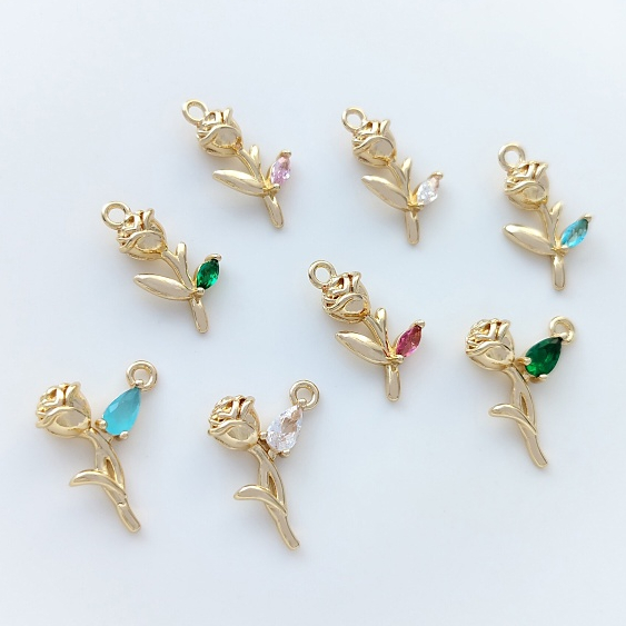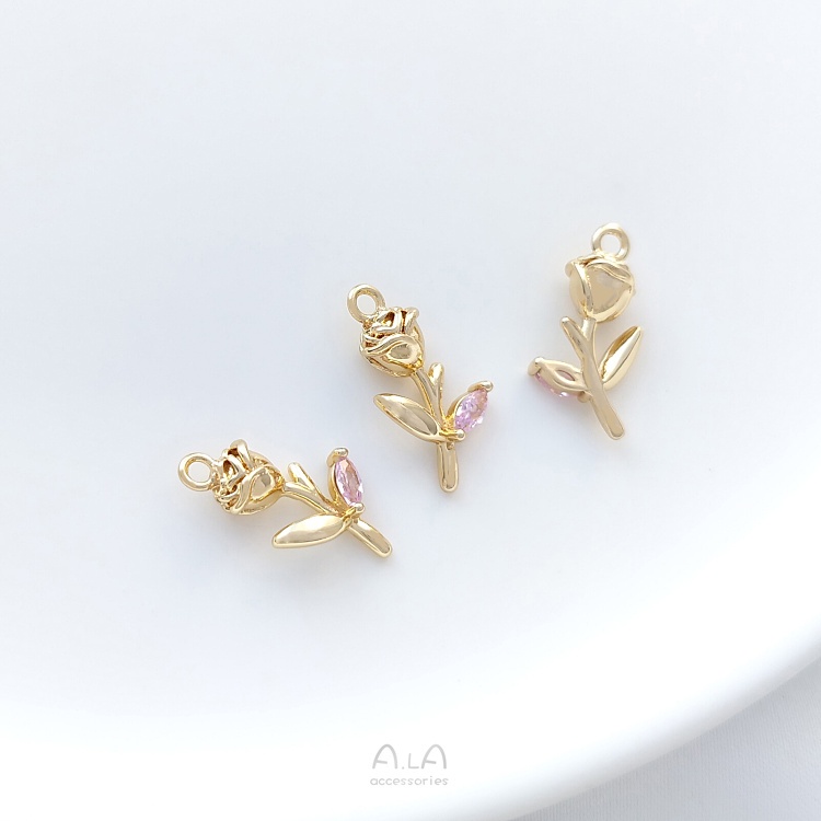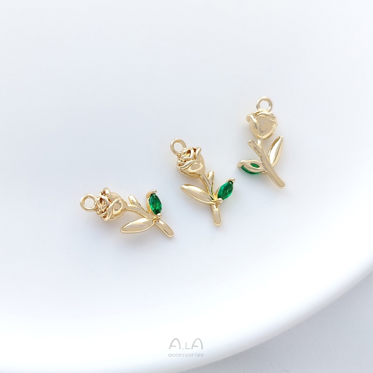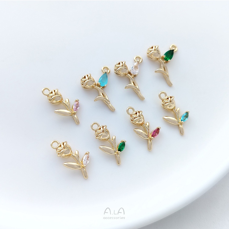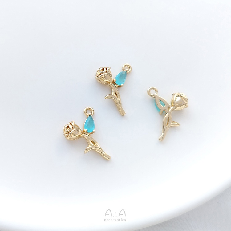 宏雲Hongyun-Ala-0801–鑲彩鋯14K包金保色帶枝葉玫瑰花吊墜手工diy手鏈項鏈耳環吊飾掛件藍色鋯 側吊環玫瑰花 1個|透白鋯 上吊環玫瑰花 1個|粉紅鋯 上吊環玫瑰花 1個|綠色鋯 上吊環玫瑰花 1個|紅色鋯 上吊環玫瑰花 1個|藍色鋯 上吊環玫瑰花 1個|透白鋯 側吊環玫瑰花 1個|綠色鋯 側吊環玫瑰花 1個OthersHongYun飾品配件批發零售