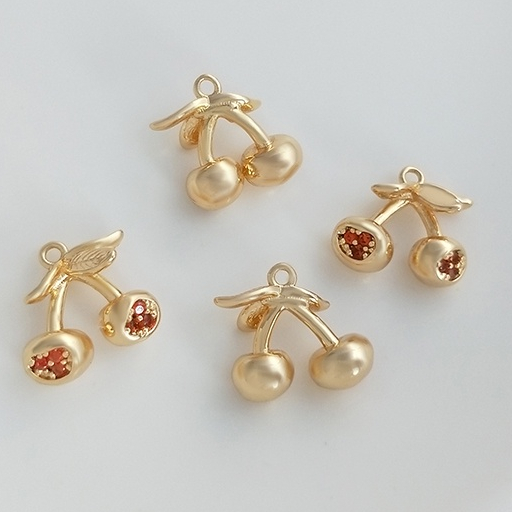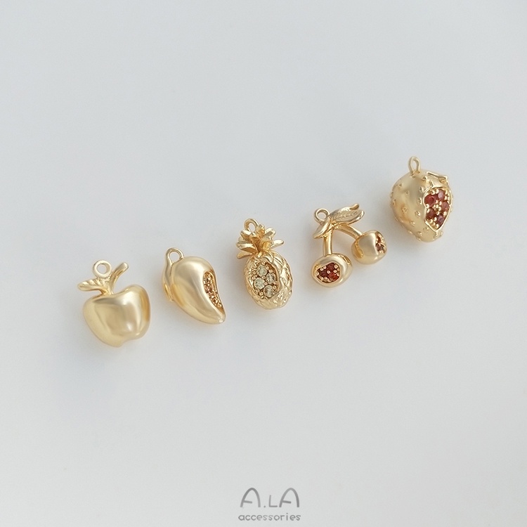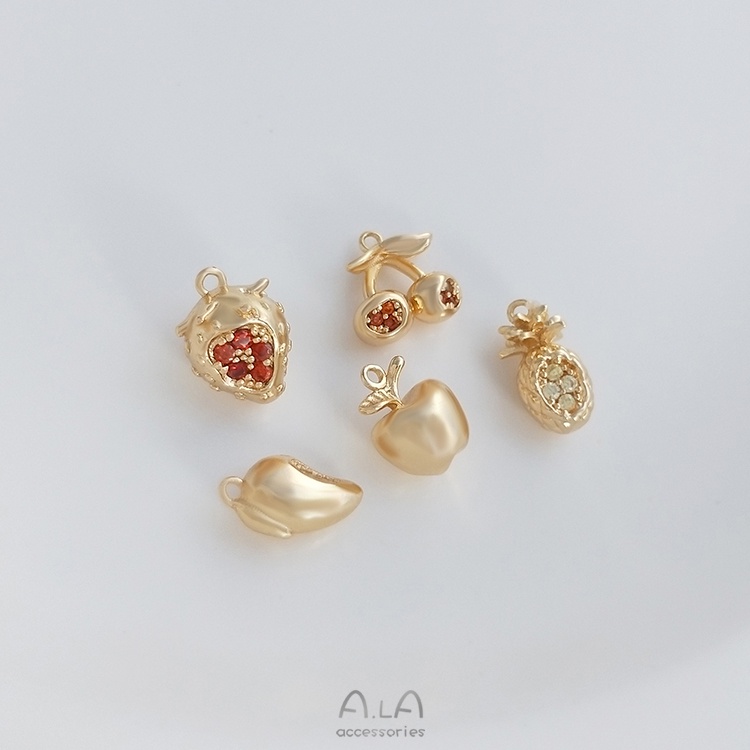 宏雲Hongyun-Ala–14K鍍金保色鑲彩鋯立體水果系列吊墜芒果草莓櫻桃diy手鏈飾品掛件