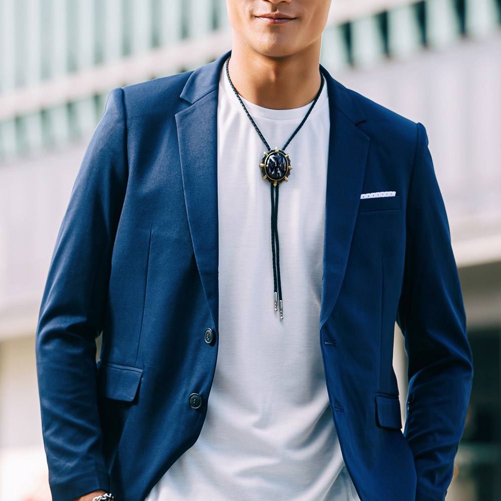 【MF select】 紳士鋒芒 星空黑 保羅領帶 Bolo Tie 皮繩項鍊 領帶項鍊 領結 領帶紳士鋒芒星空黑保羅領帶|單售真皮皮繩MF select 官方旗艦店