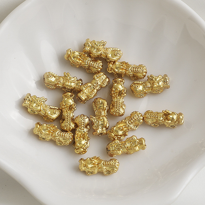 宏雲Hongyun-xs–沙金包金保色銅錢福字貔貅隔珠招財金錢幣串手鏈串珠diy飾品配件