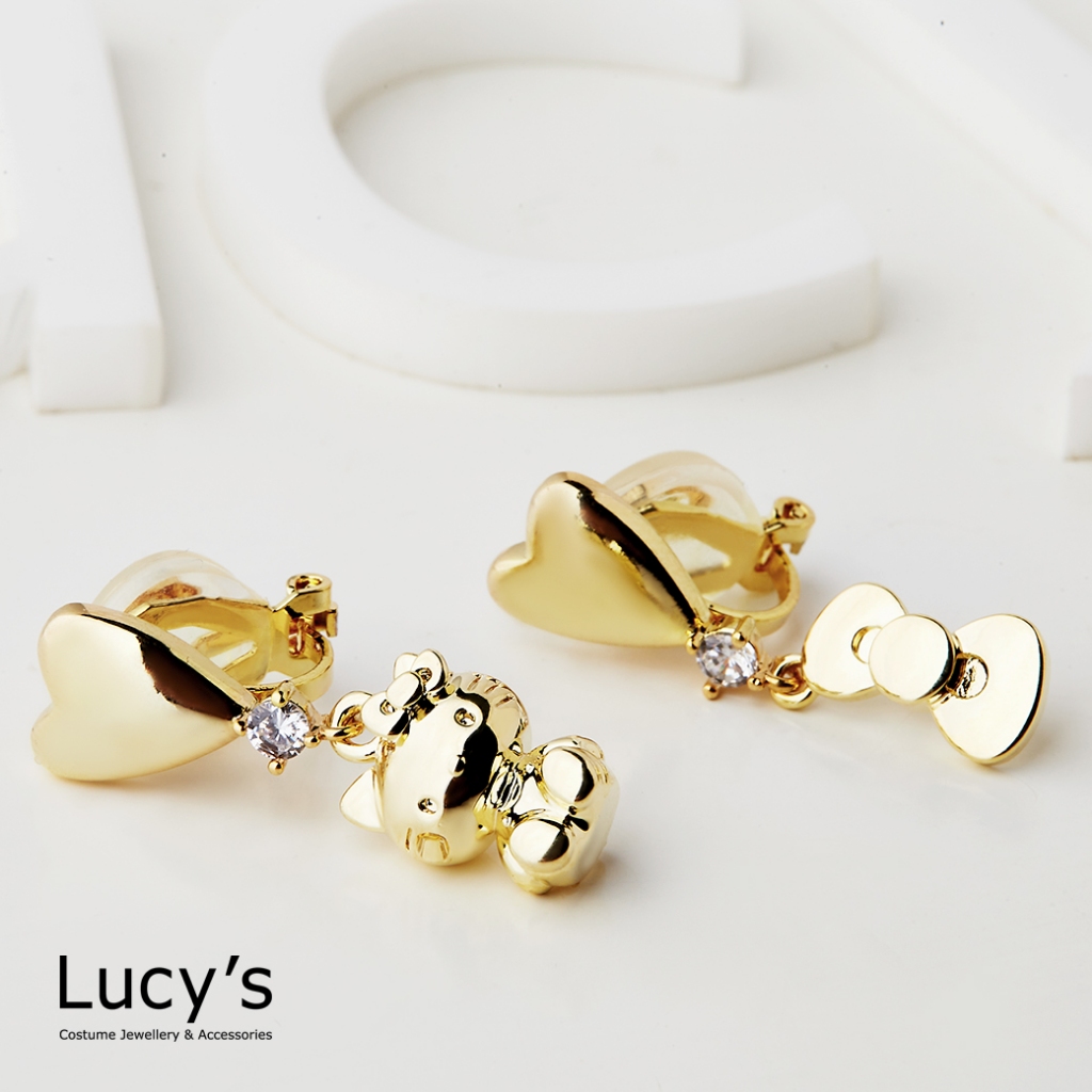 Lucy’s X Hello Kitty 限量聯名 Cutie 愛心針式/夾式耳環 (三色) (125404)銀(針式)|金(針式)|玫金(針式)|銀(夾式)|金(夾式)|玫金(夾式)Lucy’s 飾品