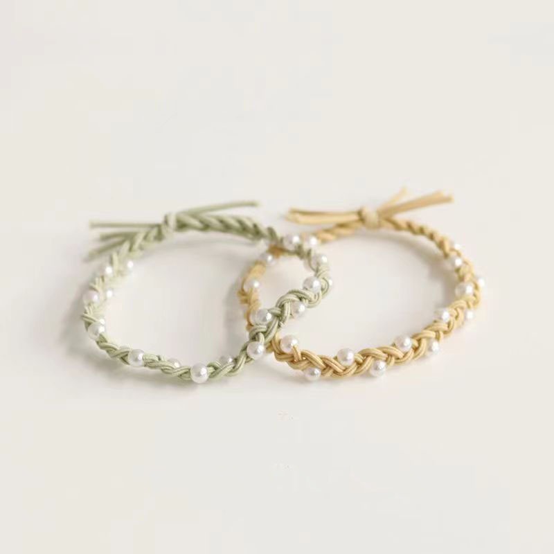 髮圈 簡約髮圈手工珍珠蝴蝶結頭繩 氣質優雅超仙網紅皮套橡皮筋 081138黃色|藍色|灰色|綠色|粉色|黑色Hair Ties, Ribbons & ScrunchiesLeenaSui ~台灣賣家 隔日到貨