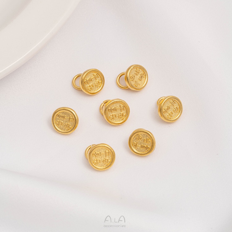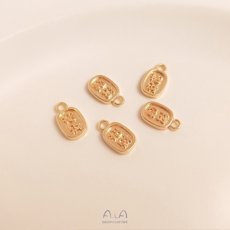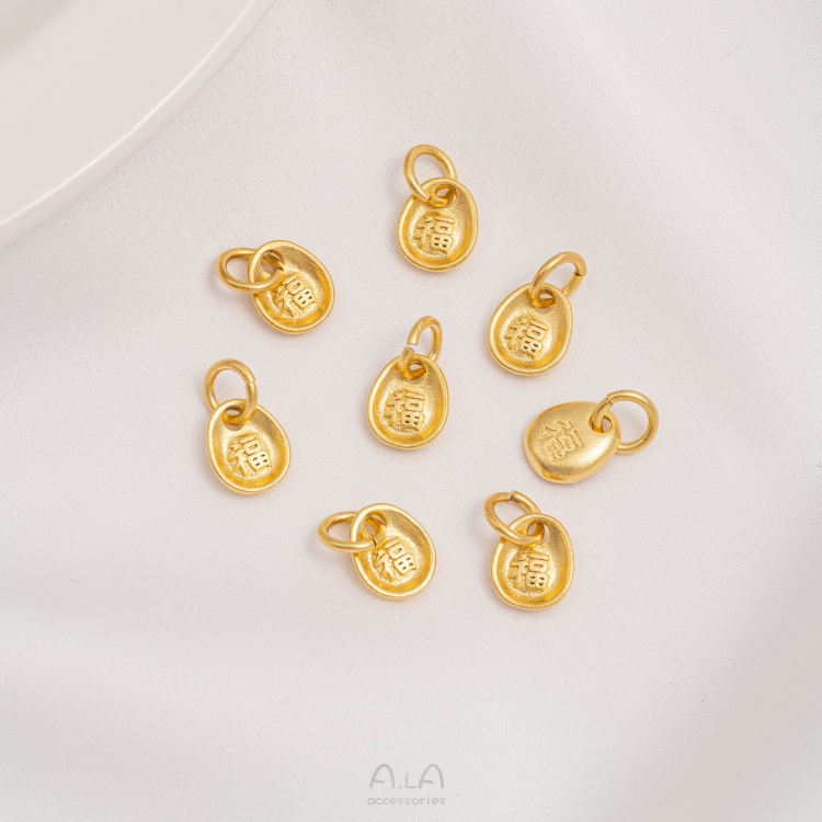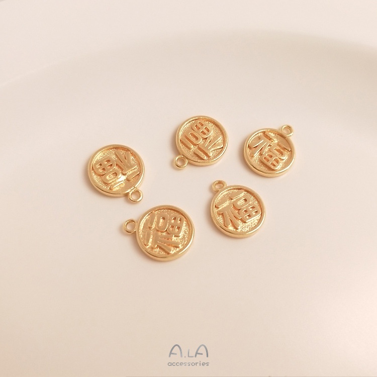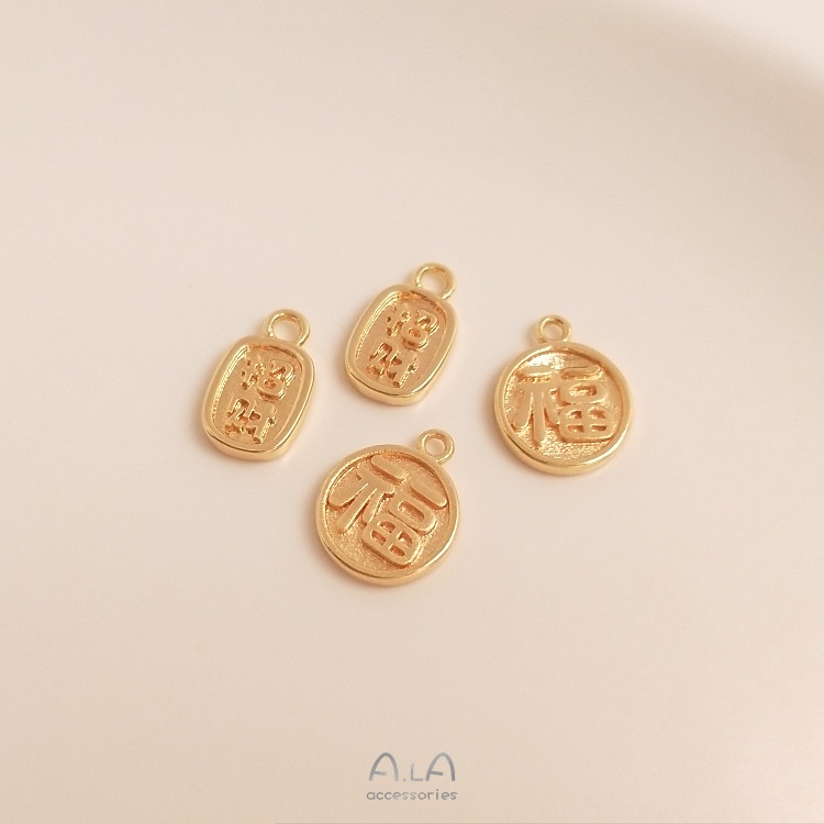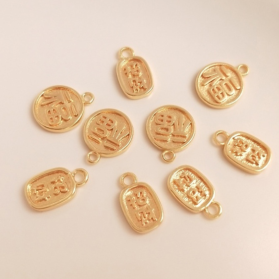 宏雲Hongyun-Ala-銅福牌14K鍍金保色圓牌福字吊墜橢圓形小掛件diy飾品吊飾配件6x10mm 招財橢圓小吊墜 1個|8.3mm 福字圓牌小吊墜 1個HongYun飾品配件批發零售