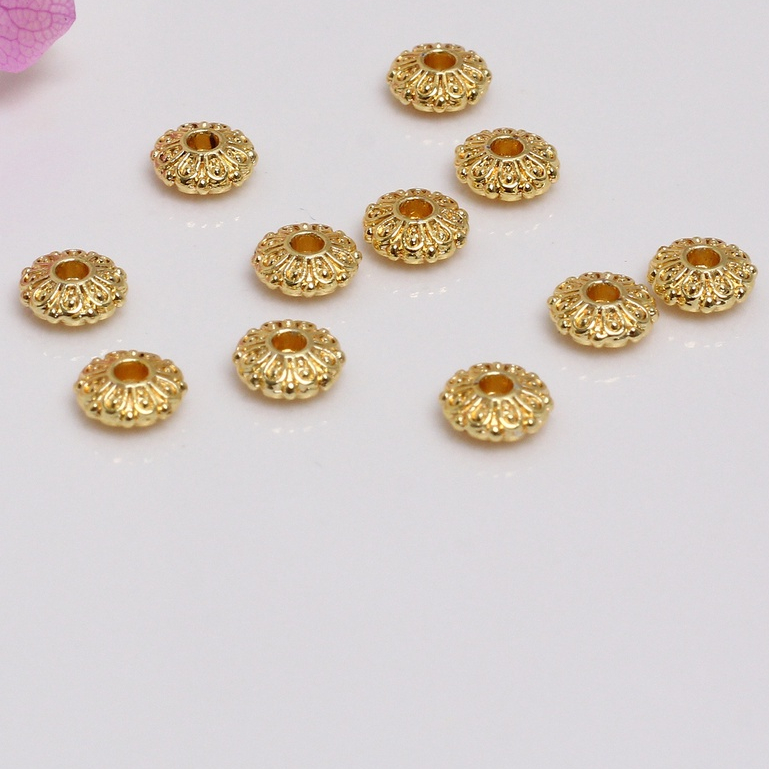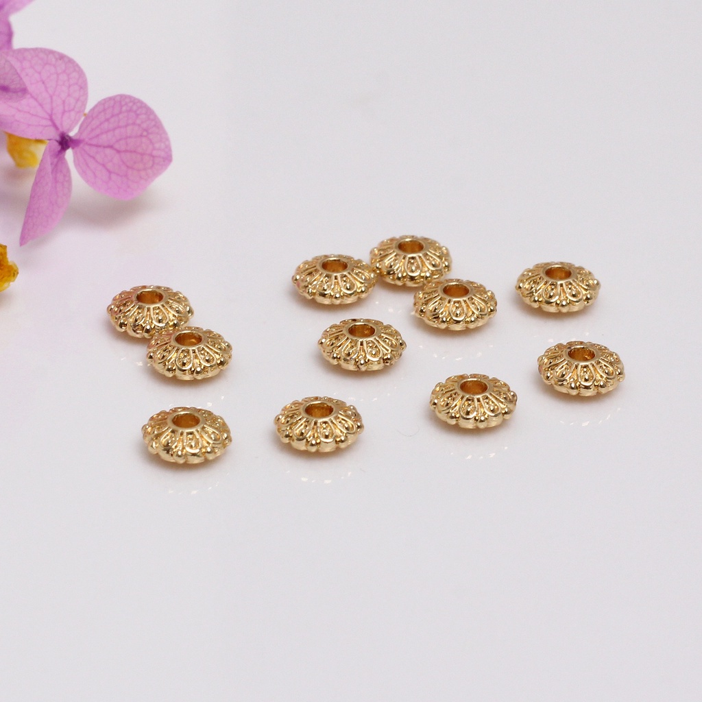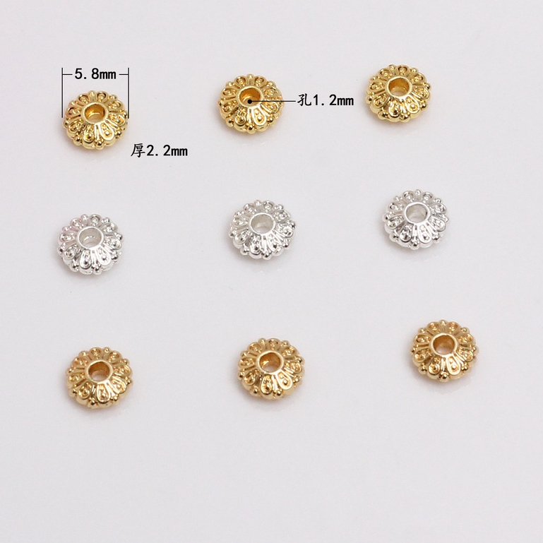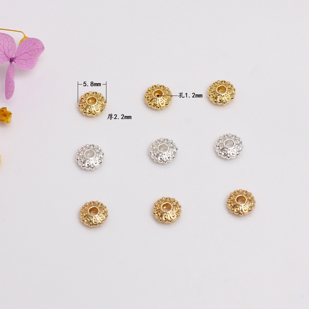宏雲Hongyun-HC- 【 100pcs/包】14k包真金保色花托 DIY飾品手工四葉草隔珠花帽 串珠飾品配件材料14k金色/保色 100pcs/包,5.8*2.2*1.2mm花紋飛碟片|18k金色/保色 100pcs/包,5.8*2.2*1.2mm花紋飛碟片|銀色/保色 100pcs/包,5.8*2.2*1.2mm花紋飛碟片HongYun飾品配件批發零售