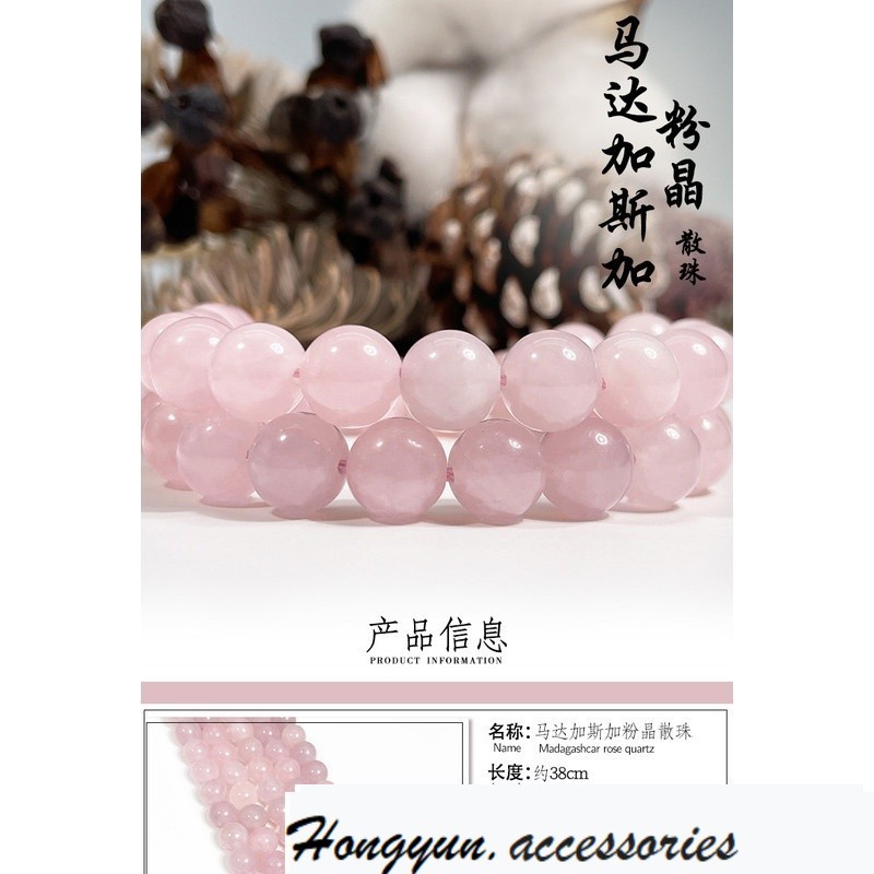 宏雲Hongyun-ew-5A天然馬粉粉水晶散珠配件珠子馬拉加西天然粉晶圓珠子飾品配飾