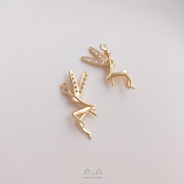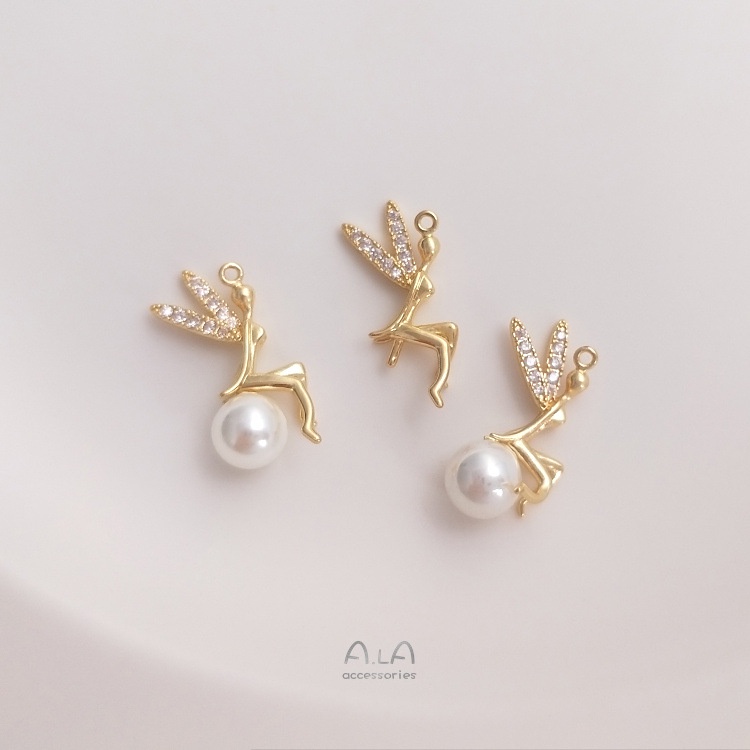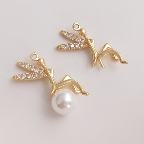 宏雲Hongyun-Ala-14K鍍金保色帶半孔珠針小精靈吊墜天使珠托吊飾diy粘水晶珍珠配件13x16mm小精靈珠托吊墜 1個HongYun飾品配件批發零售