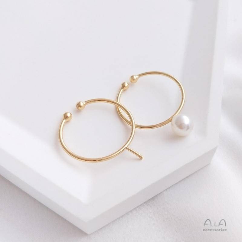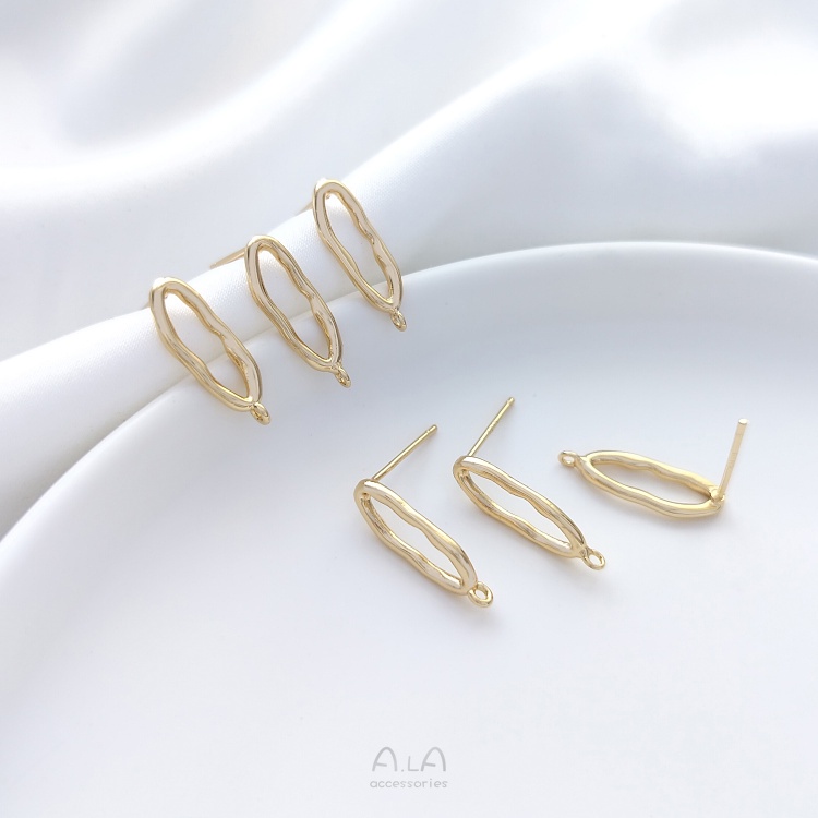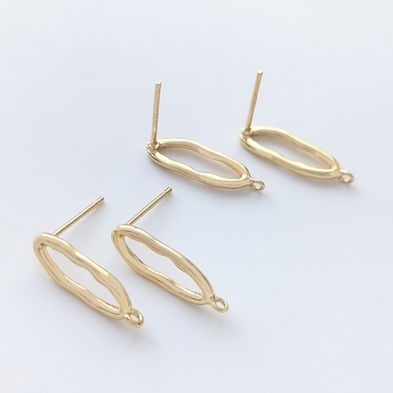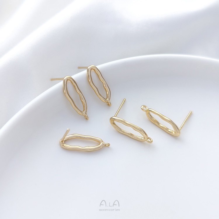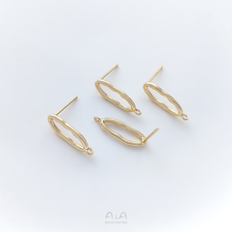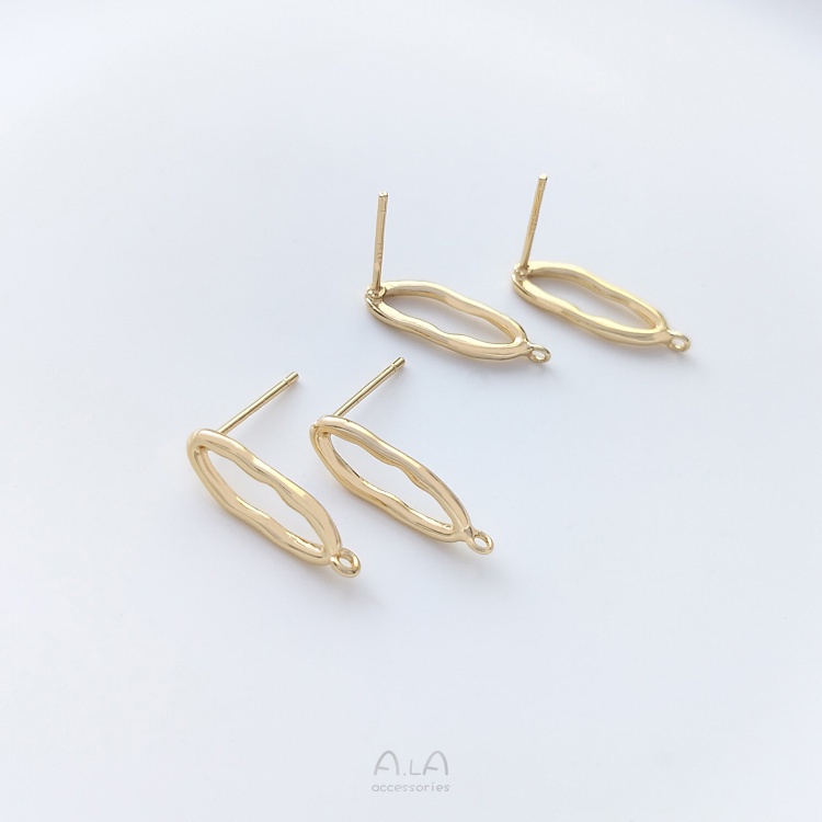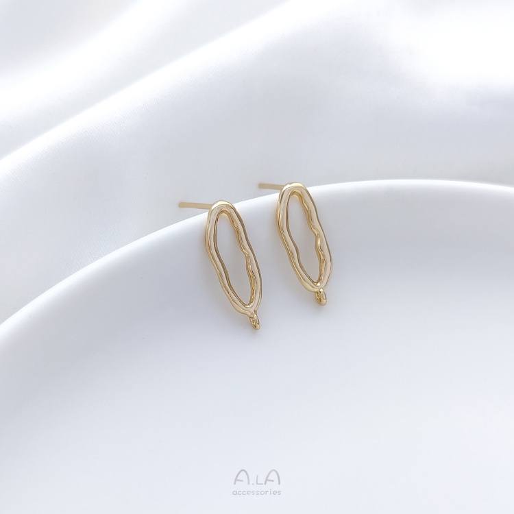 宏雲Hongyun-Ala-0801–925銀針14K包金保色不規則橢圓形帶吊環耳釘diy耳環飾品手工配件不規則橢圓帶吊環耳釘1對 2只OthersHongYun飾品配件批發零售