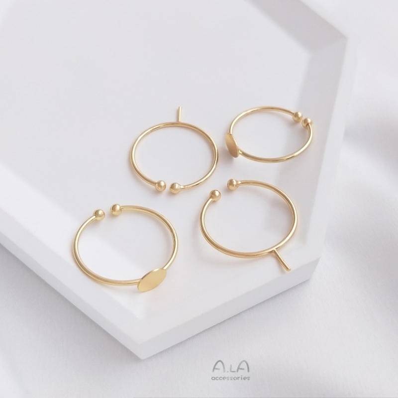 宏雲Hongyun-Ala新品-14k包金保色diy手工平托戒指粘貼戒面半孔珠針鑲珍珠開口戒托配件半孔珠針diy開口戒指1個|6mm平托diy開口戒指1個|白金色6mm平托diy開口戒1個|白金色半孔珠針diy開口戒1個HongYun飾品配件批發零售