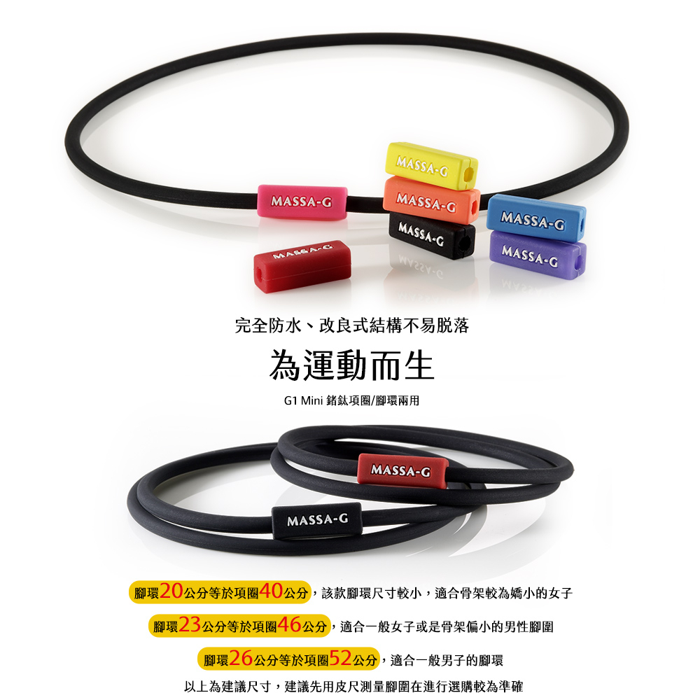 MASSA-G G1 Mini 鍺鈦項圈/鍺鈦腳環(4MM)黃,46cm(繞兩圈23cm)|藍,52cm(繞兩圈26cm)|紫,46cm(繞兩圈23cm)|紅,46cm(繞兩圈23cm)|桃,40cm(繞兩圈20cm)|桃,46cm(繞兩圈23cm)|黑,40cm(繞兩圈20cm)|橘,40cm(繞兩圈20cm)|紅,52cm(繞兩圈26cm)|藍,40cm(繞兩圈20cm)|橘,52cm(繞兩圈26cm)|桃,52cm(繞兩圈26cm)|黃,40cm(繞兩圈20cm)|黃,52cm(繞兩圈26cm)|藍,46cm(繞兩圈23cm)|紫,40cm(繞兩圈20cm)|黑,46cm(繞兩圈23cm)|黑,52cm(繞兩圈26cm)|紅,40cm(繞兩圈20cm)|紫,52cm(繞兩圈26cm)|橘,46cm(繞兩圈23cm)MASSA–G鍺鈦能量精品