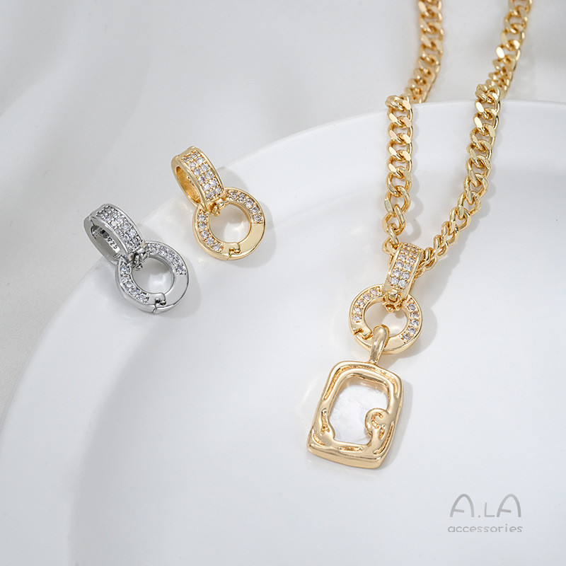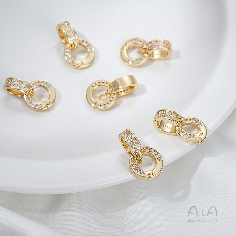 宏雲Hongyun-Ala新品-14K包金鑲鋯扣頭雙環百搭扣線繩鏈條項鍊diy雙開可拆卸吊墜扣