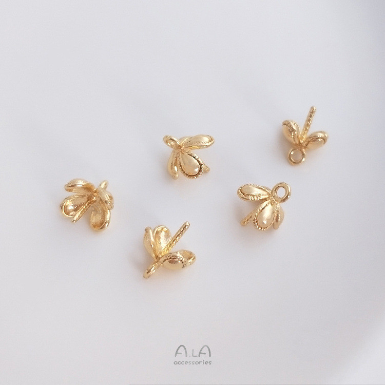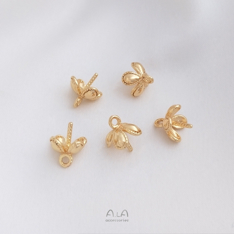 宏雲Hongyun-Ala新品-14k包金保色四葉草花托半孔水晶珍珠托吊墜托手工diy粘珠飾品配件四葉草花珠托吊墜空托 1個HongYun飾品配件批發零售