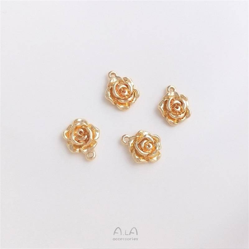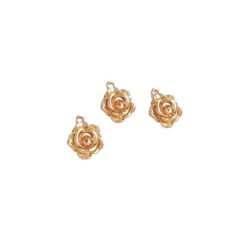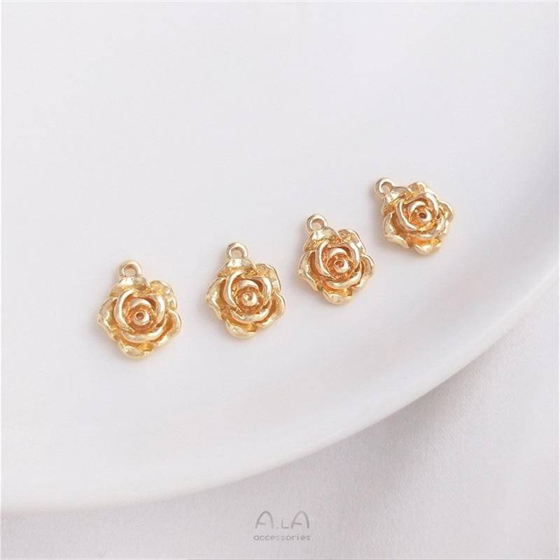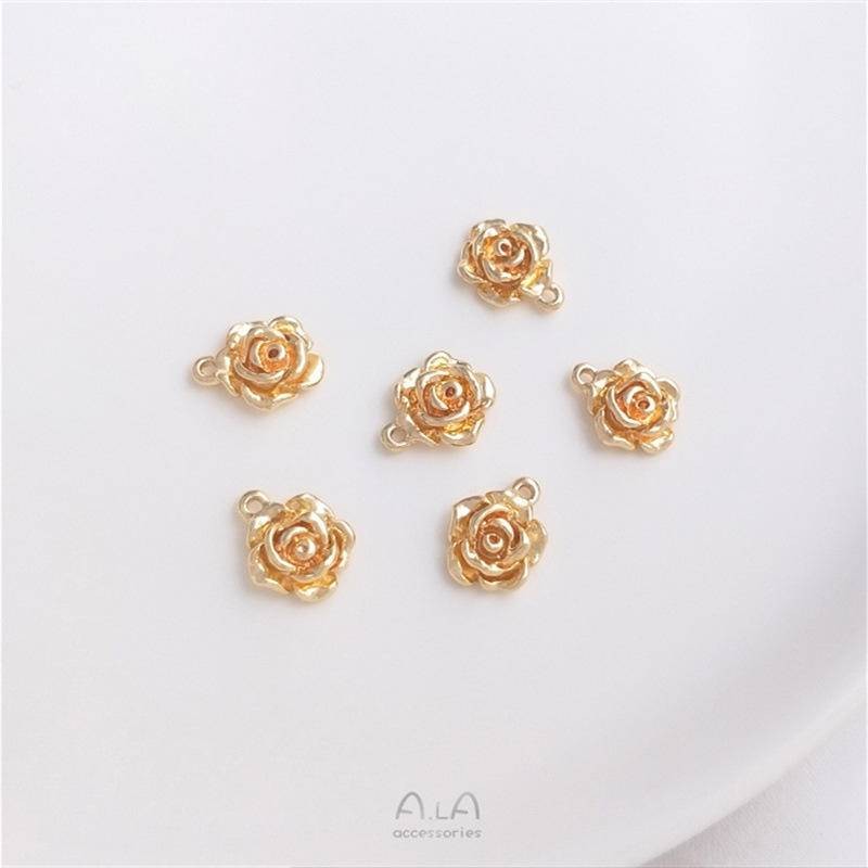 宏雲Hongyun-Ala新品-銅包14K真金保色玫瑰花吊墜小吊飾手工diy耳環手鏈掛件飾品配飾9mm玫瑰花小吊墜 1個HongYun飾品配件批發零售