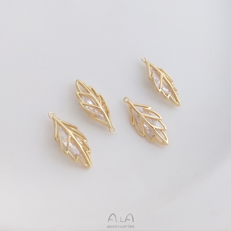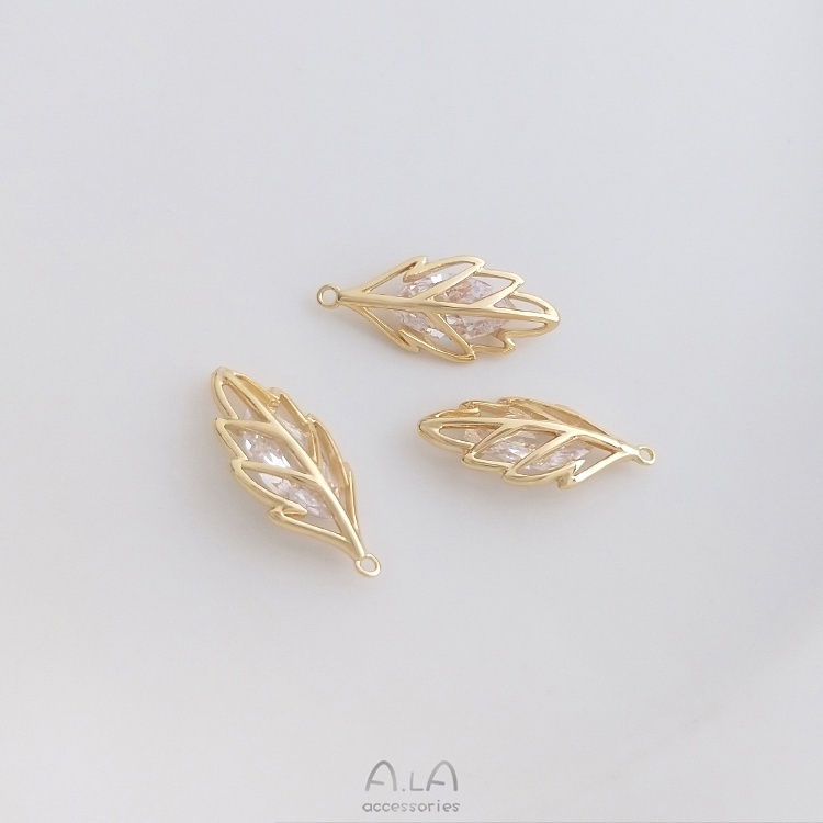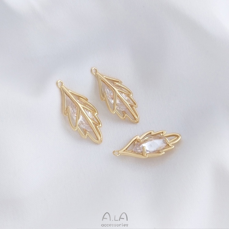 宏雲Hongyun-Ala—14K包金保色鑲嵌馬眼鋯石立體樹葉吊墜diy手鏈項鏈耳環首飾品掛件包馬眼鋯石立體樹葉吊墜 1個Charms, Pendants & OrnamentsHongYun飾品配件批發零售