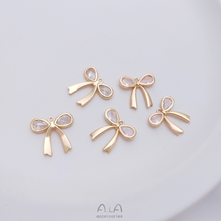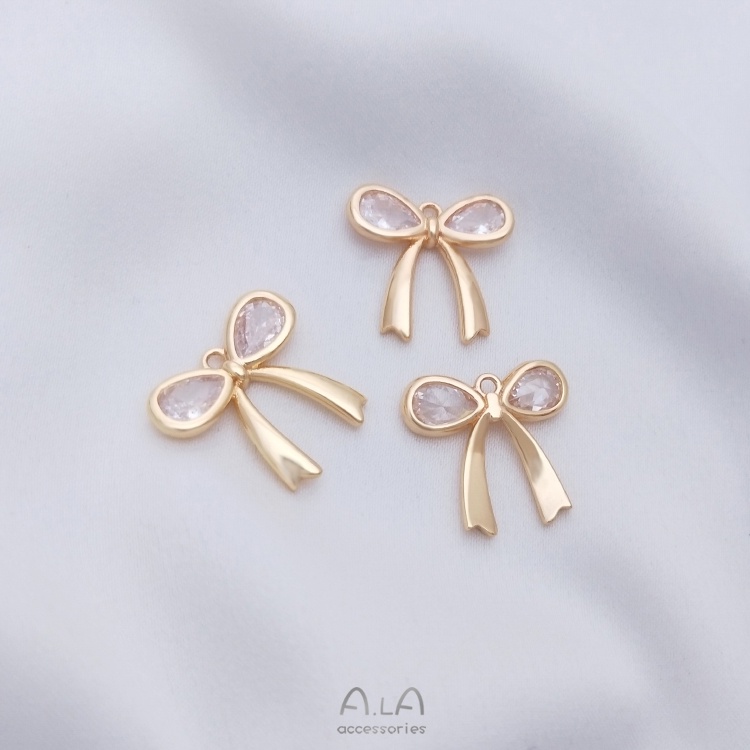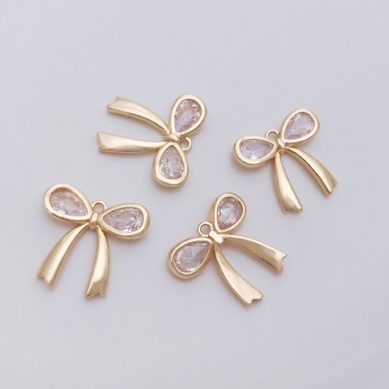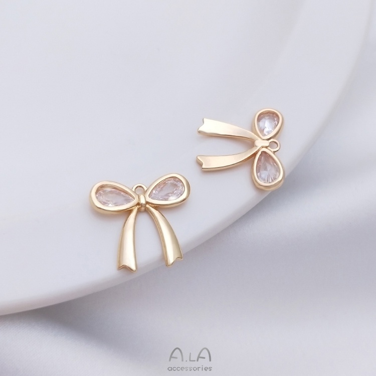 宏雲Hongyun-Ala—保色14K包金鑲嵌水滴鋯石蝴蝶結吊墜diy項鏈手鏈掛件耳環耳扣吊飾鑲水滴鋯蝴蝶結吊墜 1個OthersHongYun飾品配件批發零售