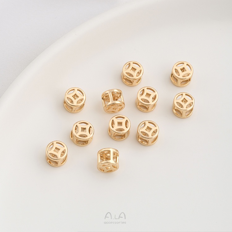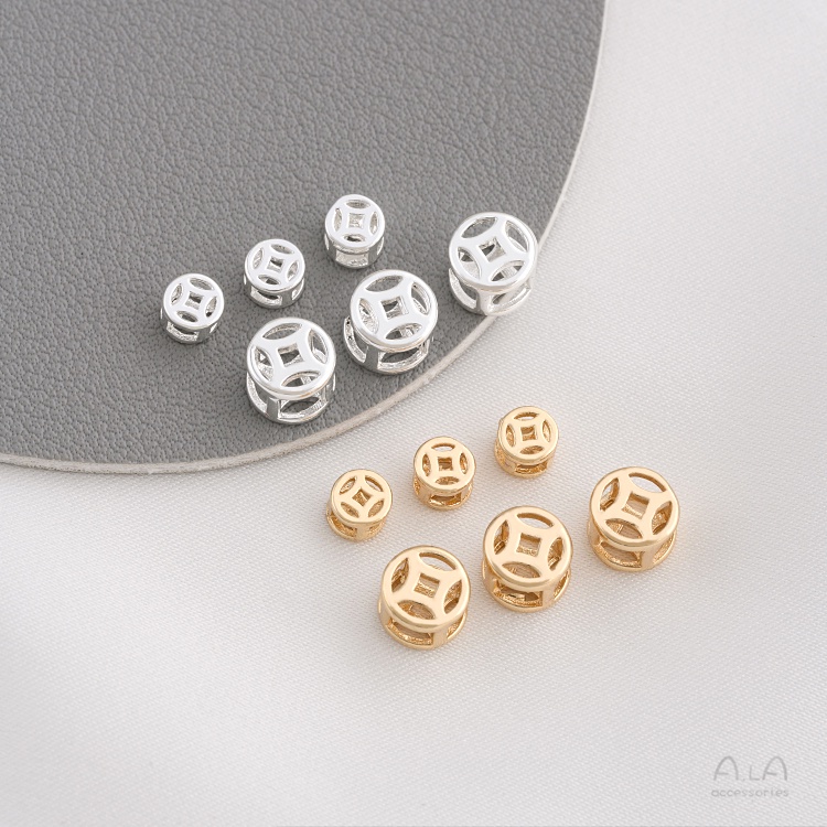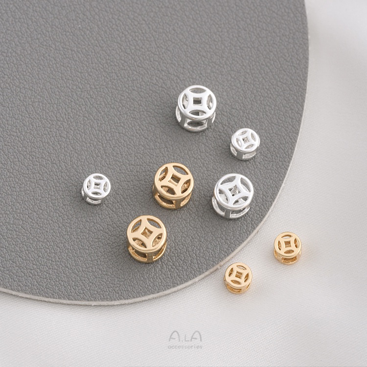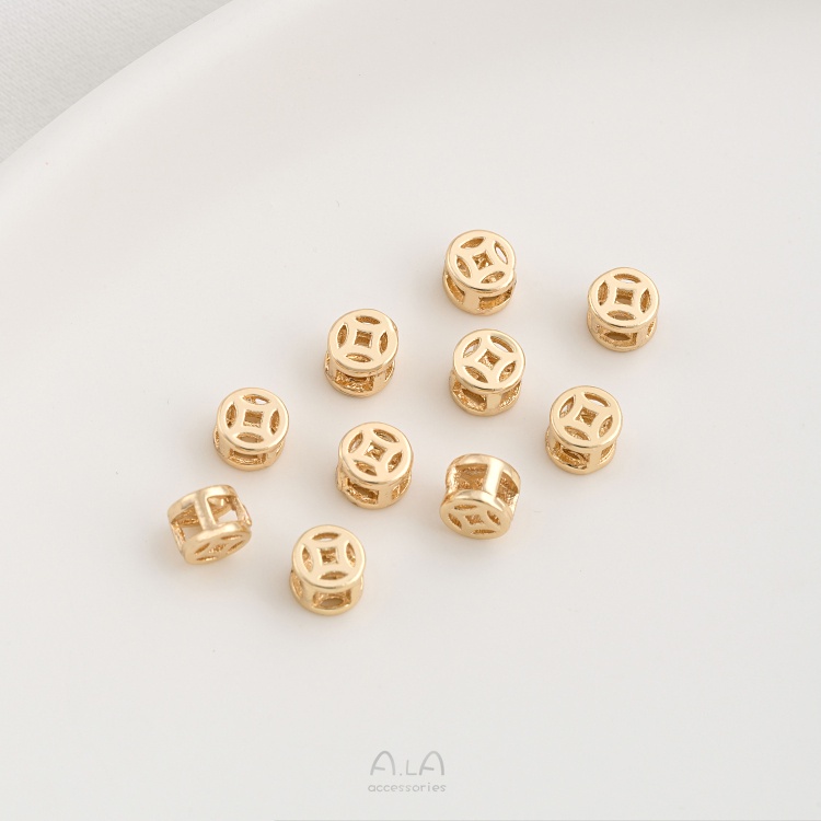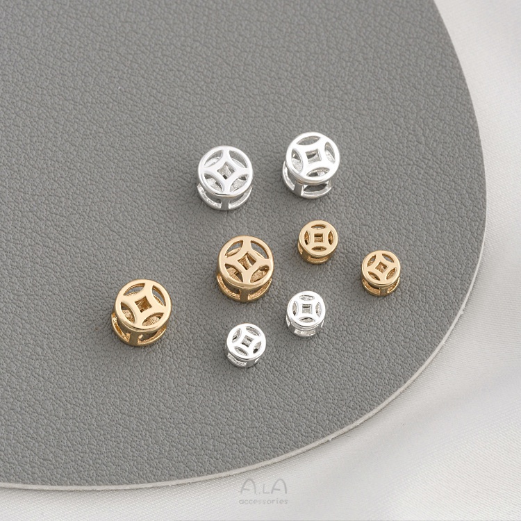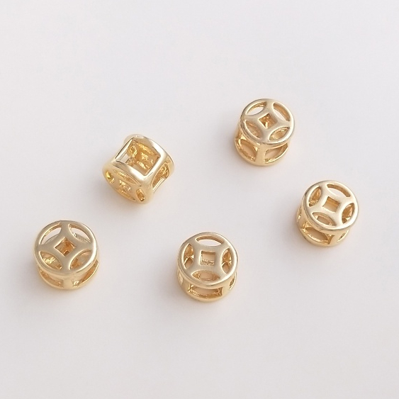 宏雲Hongyun-Ala- 14K包金厚銀保色鏤空銅錢大孔珠手鍊編織皮繩隔珠手工diy串珠配件包厚银 铜钱隔珠4mm|14K包金 铜钱隔珠6mm|14K包金 铜钱隔珠4mm|包厚银 铜钱隔珠6mmCharms, Pendants & OrnamentsHongYun飾品配件批發零售