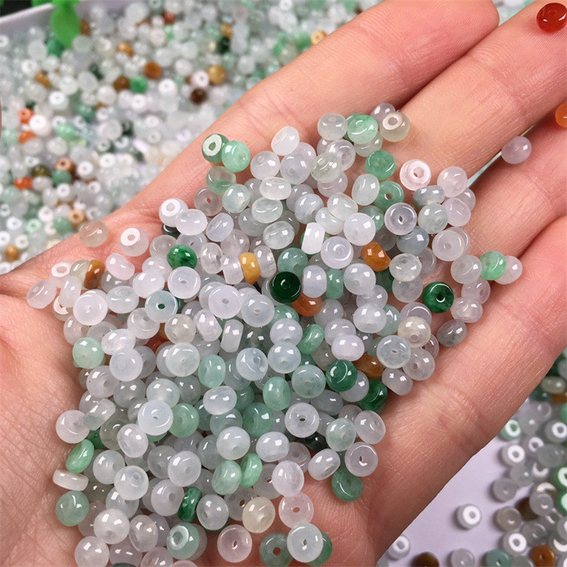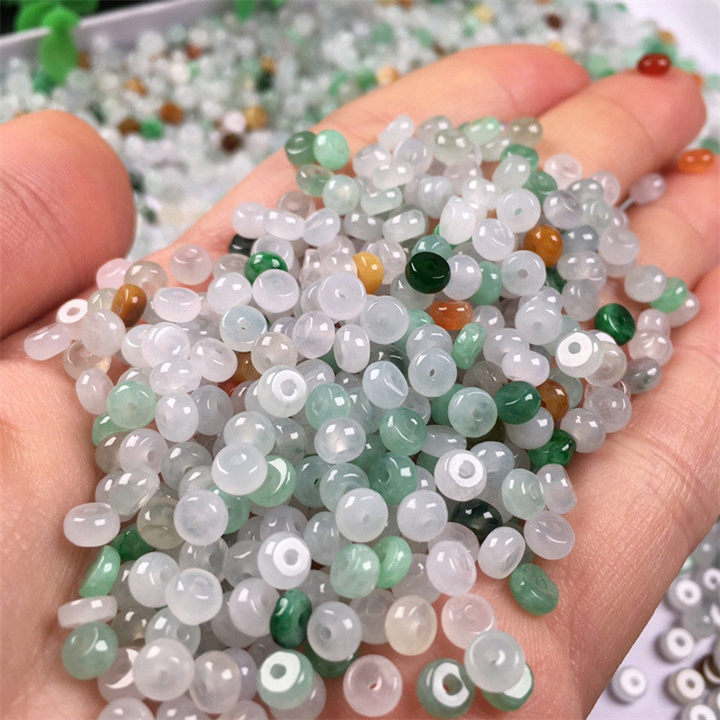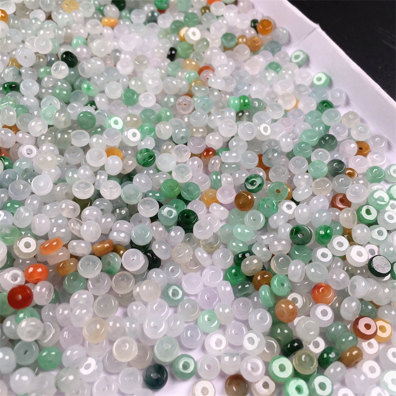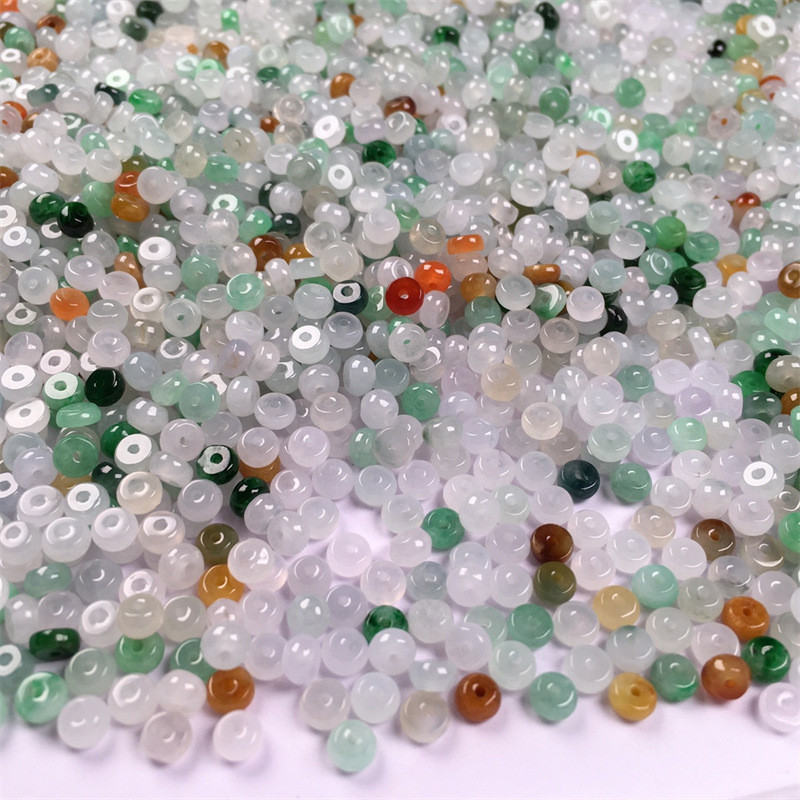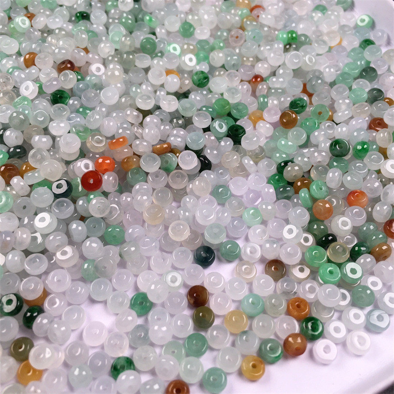 宏雲Hongyun-jf-(10pcs)- 天然A貨翡翠散珠冰種三彩色小算盤珠手串珠子DIY手鍊項鍊廠家供應约4.5mm厚2-3mmJadeHongYun飾品配件批發零售