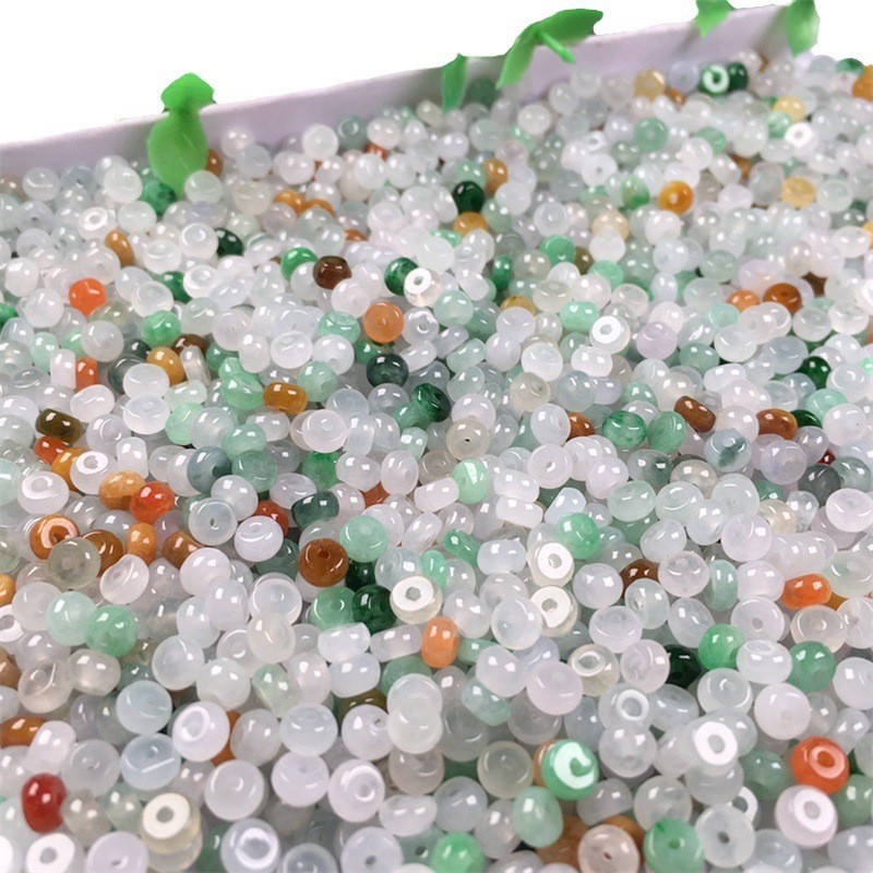 宏雲Hongyun-jf-(10pcs)- 天然A貨翡翠散珠冰種三彩色小算盤珠手串珠子DIY手鍊項鍊廠家供應