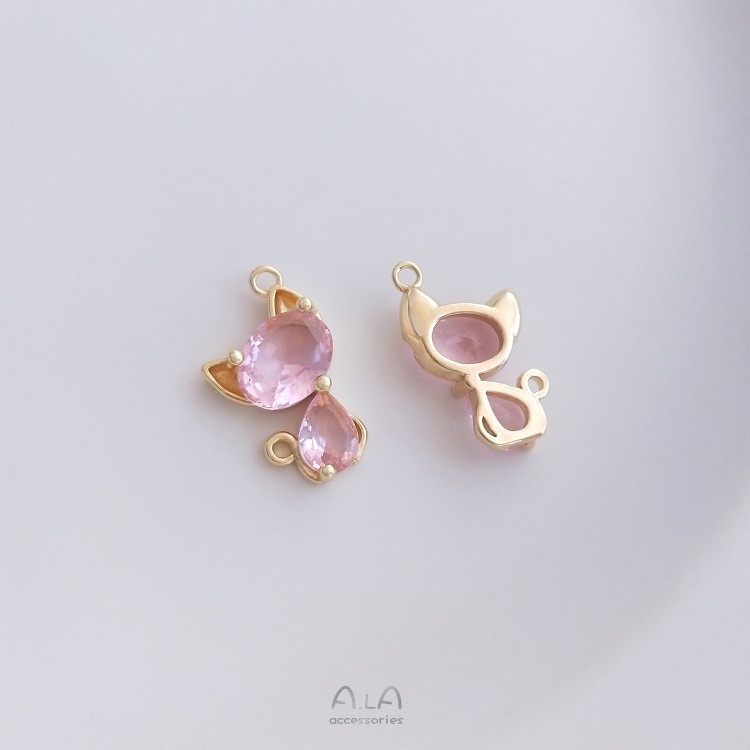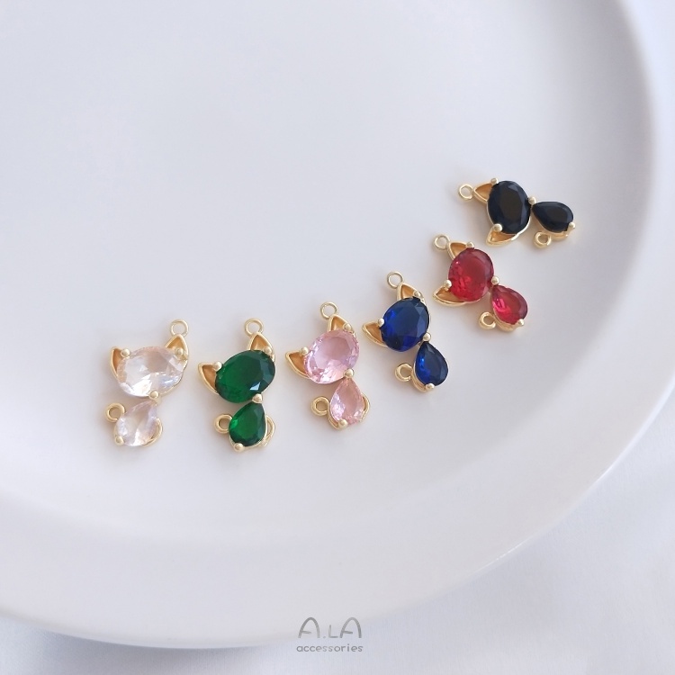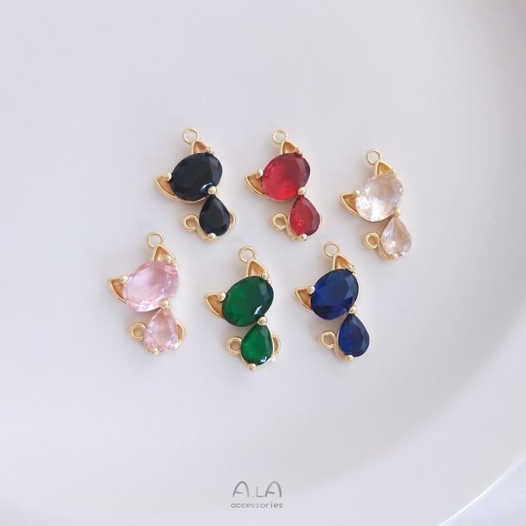宏雲Hongyun-Ala—14K包金保色貓咪吊墜可雙吊可愛貓掛件diy手鏈項鏈飾品吊飾黑色鋯 貓咪吊墜1個|粉紅鋯 貓咪吊墜1個|西瓜紅 貓咪吊墜1個|綠色鋯 貓咪吊墜1個|藍色鋯 貓咪吊墜1個|透白鋯 貓咪吊墜1個Charms, Pendants & OrnamentsHongYun飾品配件批發零售