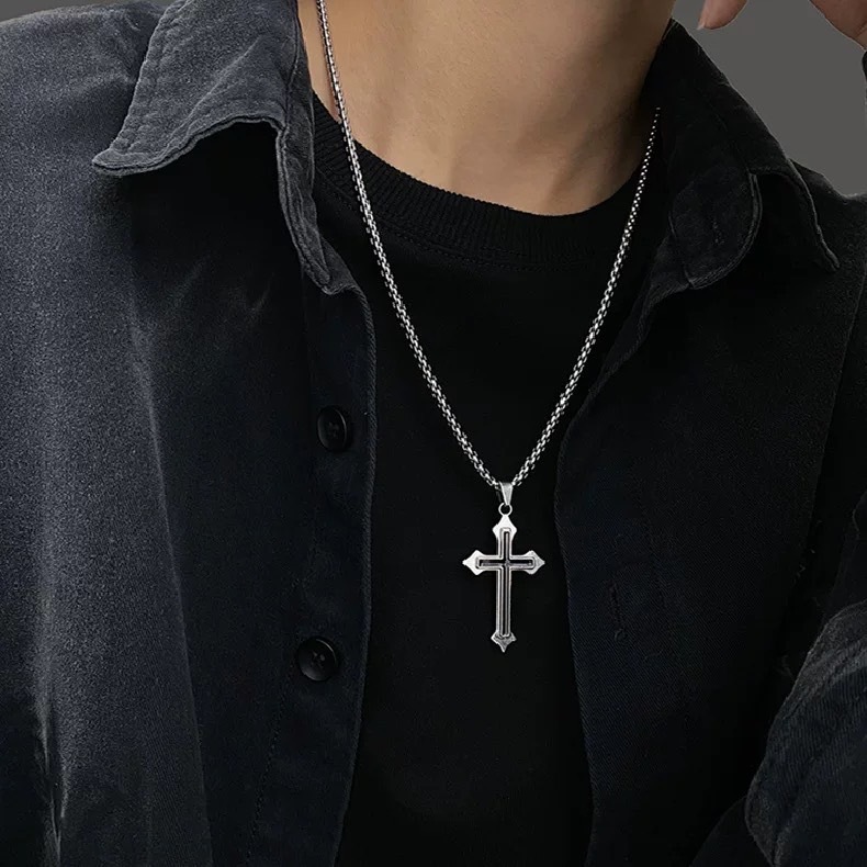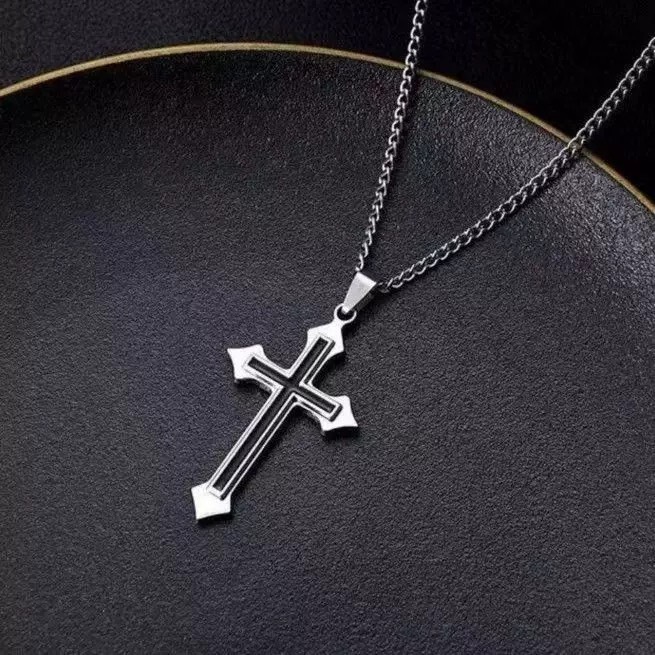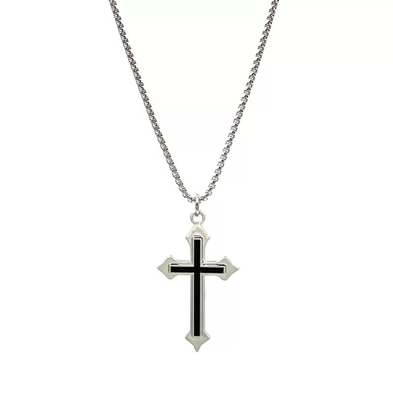 【K-2】黑十字 銀尖包邊 十字架項鍊 項鍊 鍊條 飾品 穿搭 搭配 吊墜 十字架 禮物 復古 Y2K【KM175】【K-2】黑十字 銀尖包邊 十字架項鍊 項鍊 鍊條 飾品 穿搭 搭配 吊墜 十字架 禮物 復古 Y2K【KM175】K-2 Fashionboy