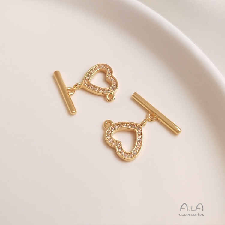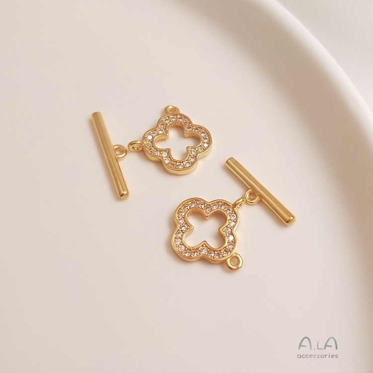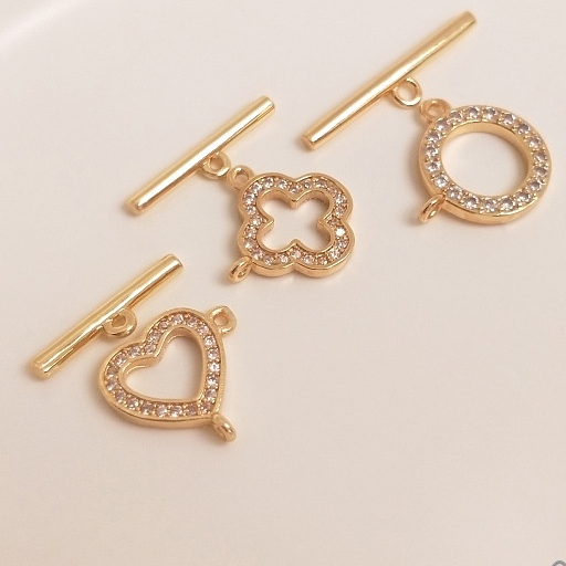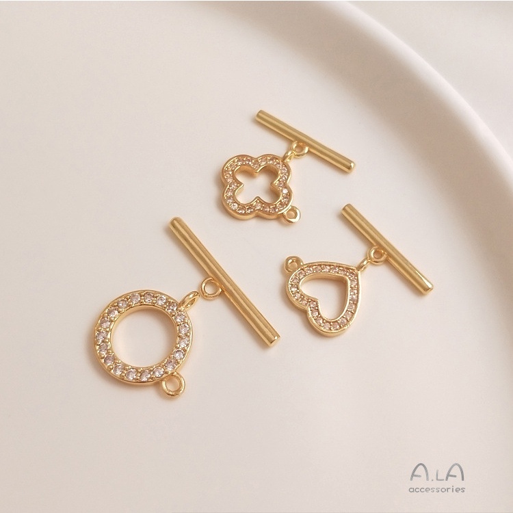宏雲Hongyun-Ala-14K鍍金保色鍍真金色微鑲鋯石幸運草愛心OT扣手鏈項鏈連接扣DIY配件14K包金心形鋯石OT扣 1套|14K包金四葉草鋯石OT扣 1套|14K包金圓形鋯石OT扣 1套HongYun飾品配件批發零售