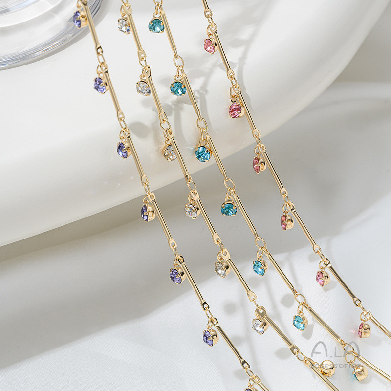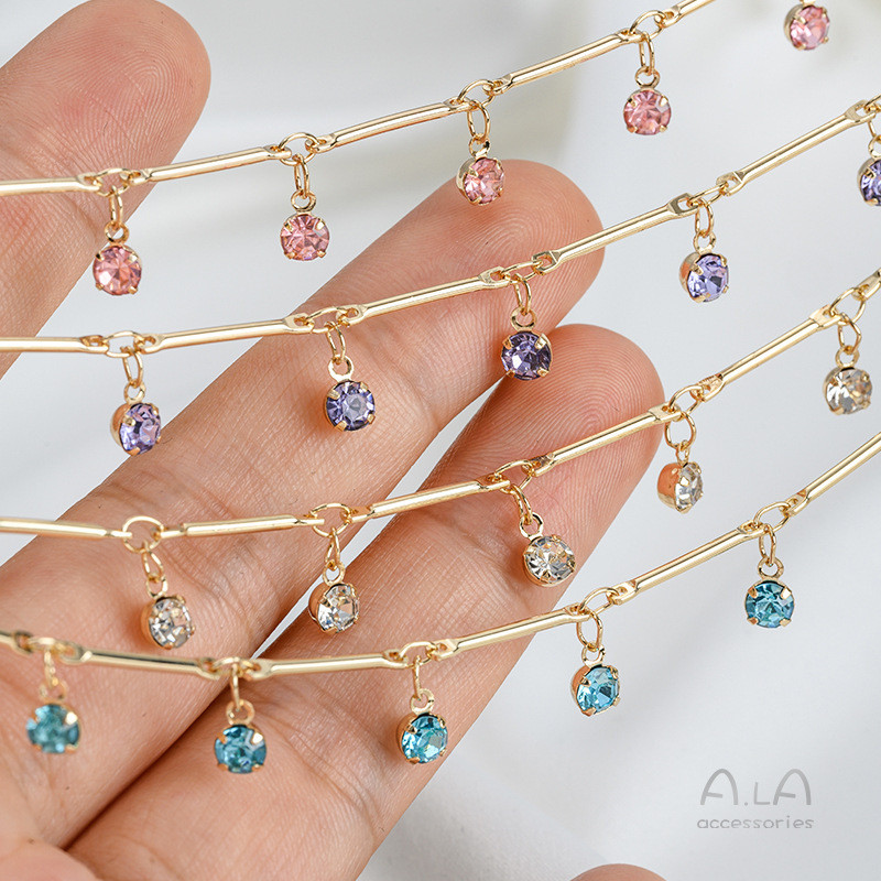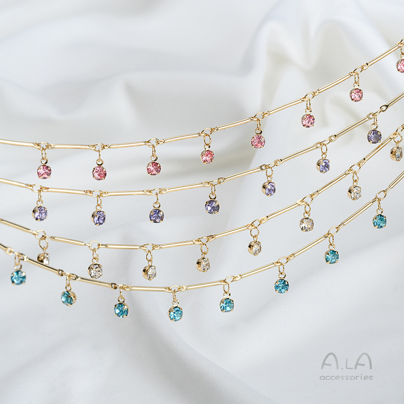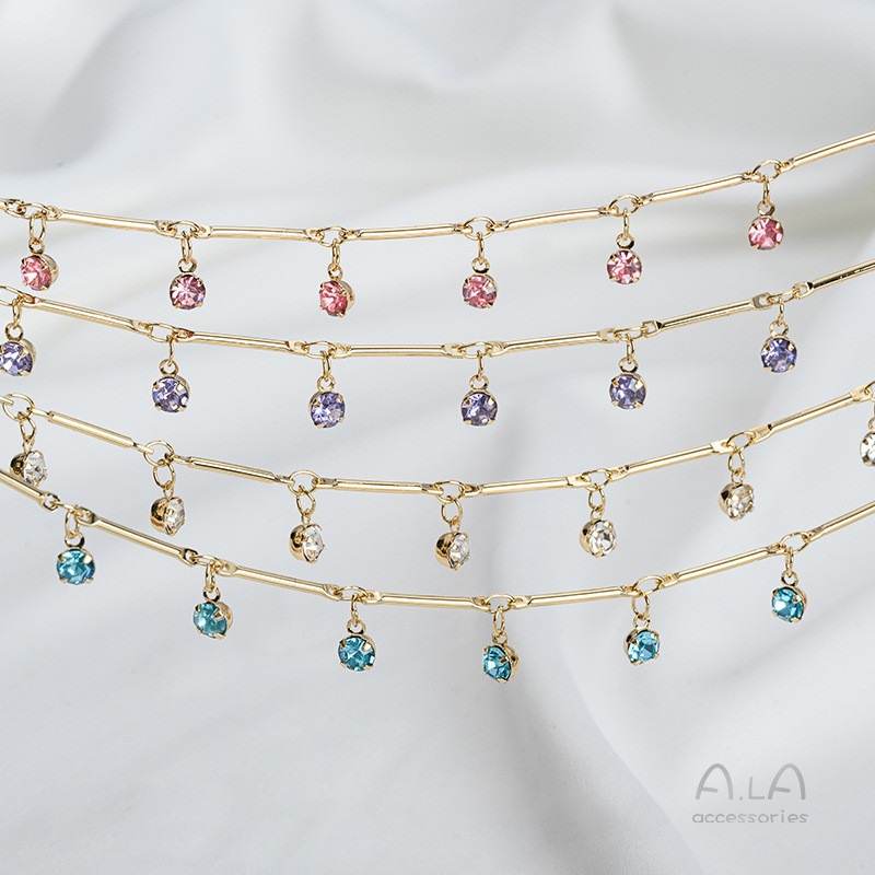 宏雲Hongyun-Ala新品-保色14k包金竹節直棒掛鋯石吊墜鏈條diy手工飾品手鍊項鍊流蘇散鏈透白鋯 直棒掛鋯石散鏈 半米 50厘米|粉紅鋯 直棒掛鋯石散鏈 半米 50厘米|藍色鋯 直棒掛鋯石散鏈 半米 50厘米|紫色鋯 直棒掛鋯石散鏈 半米 50厘米HongYun飾品配件批發零售