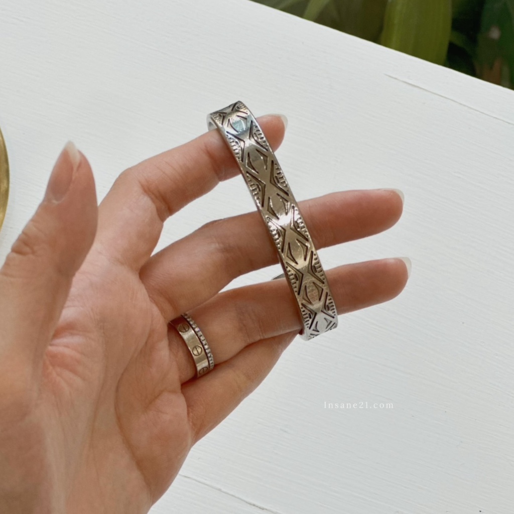 BEAMS HEART 金屬手環 復古花紋 銀色手鐲 日本製【Insane-21】上三款-菱格紋|下款-細螺旋|上款-太陽圖騰|上二款-細菱格Insane21-Japan