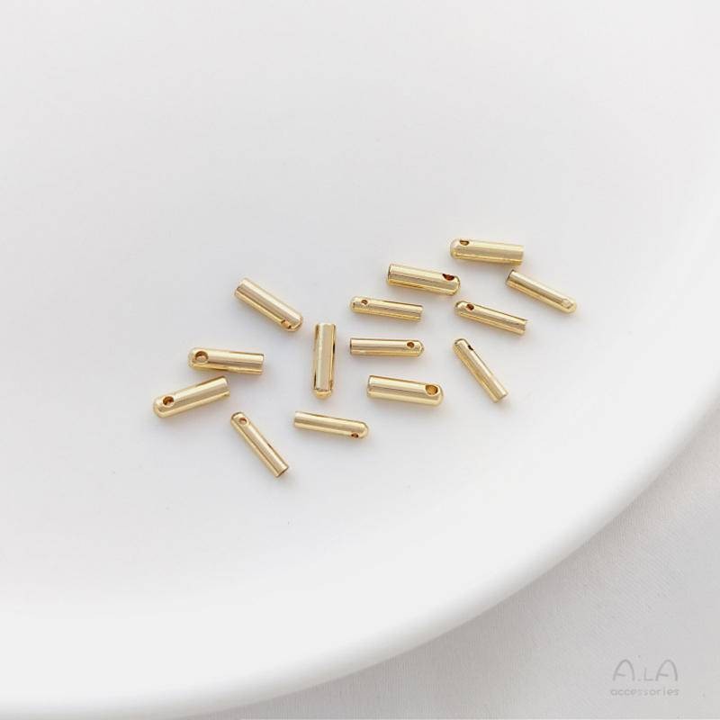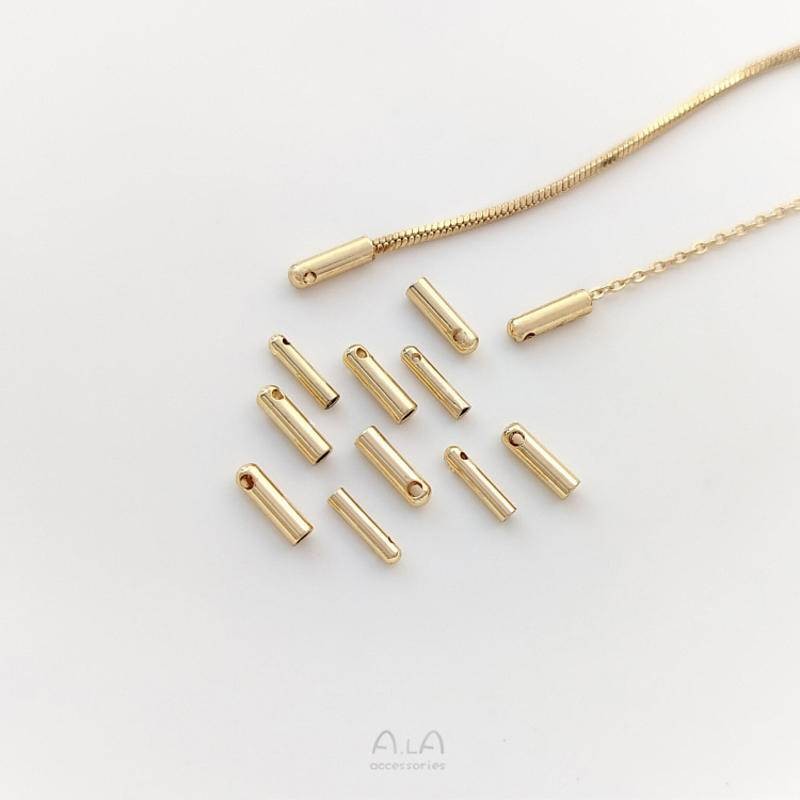 宏雲Hongyun-Ala新品-14K包金保色打孔砝碼diy配件手鏈項鍊皮繩鏈條收尾連接套管包扣頭粗細1.5mmx7mm 打孔套管 10個HongYun飾品配件批發零售
