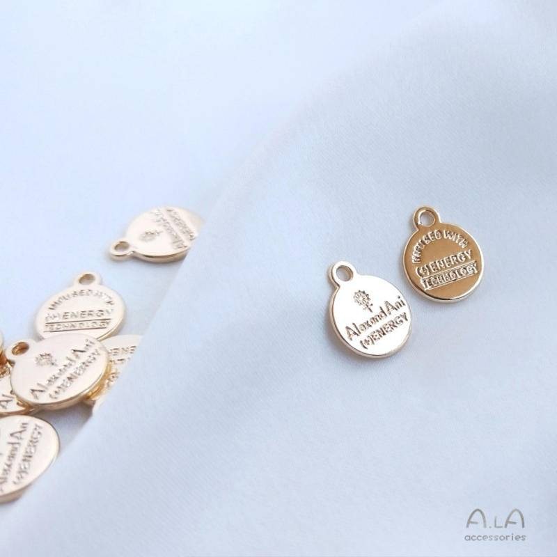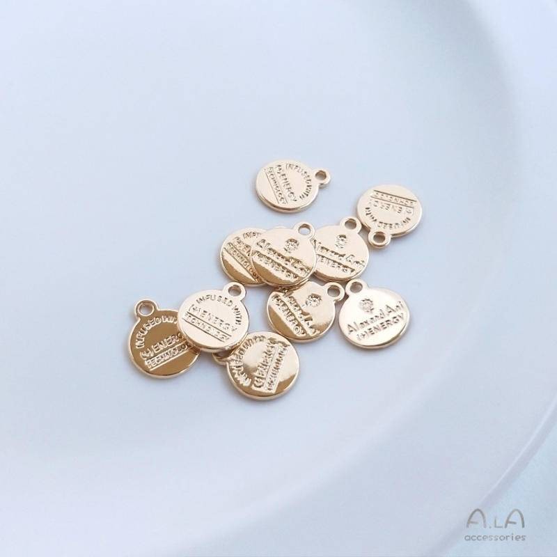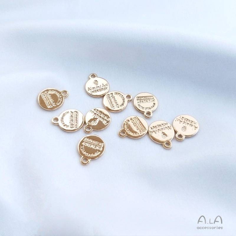 宏雲Hongyun-Ala新品-14K包真金保色配件英文字母圓牌小吊飾diy手鏈手作首飾品掛件吊墜英文圓牌10mm吊墜1個HongYun飾品配件批發零售