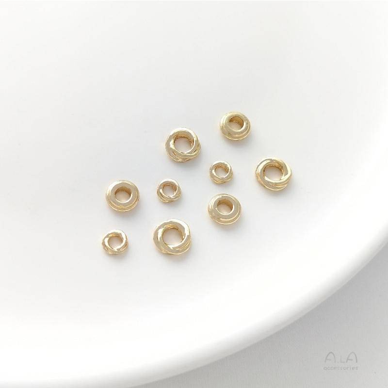 宏雲Hongyun-Ala新品-14K包金保色雙環扭圈結圈麻花圈隔片車輪隔珠環diy串飾品配件資料4mm 雙環扭圈 (10個)|6mm 雙環扭圈 (10個)|5.5mm車輪隔片(10個)HongYun飾品配件批發零售