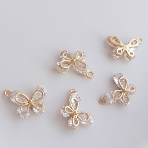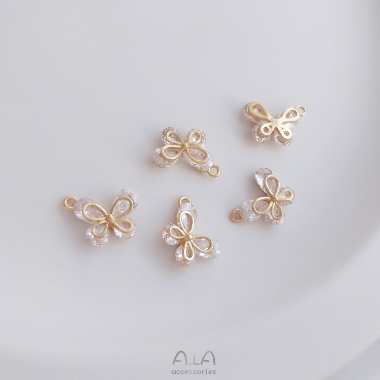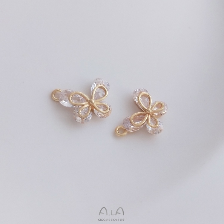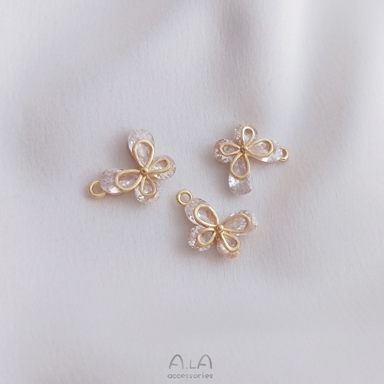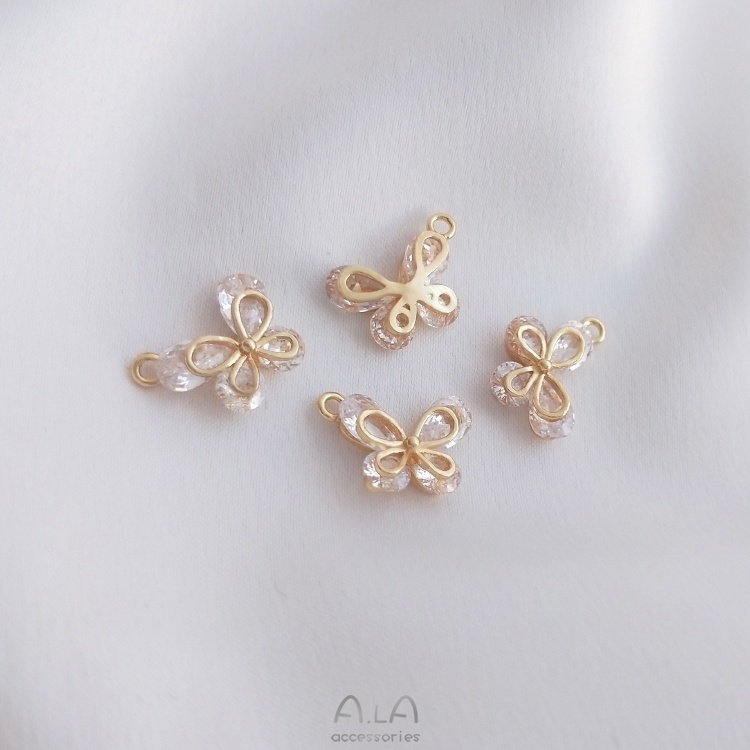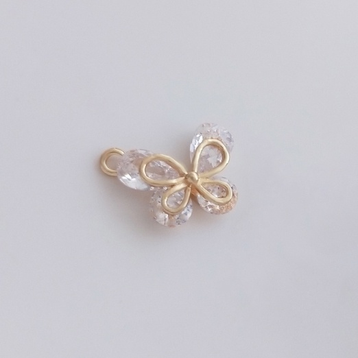 宏雲Hongyun-Ala-0801–14K金保色鋯石蝴蝶吊墜手工diy手鏈項鏈耳環耳飾品掛件手作吊飾水滴圓鋯蝴蝶小吊飾 1個OthersHongYun飾品配件批發零售