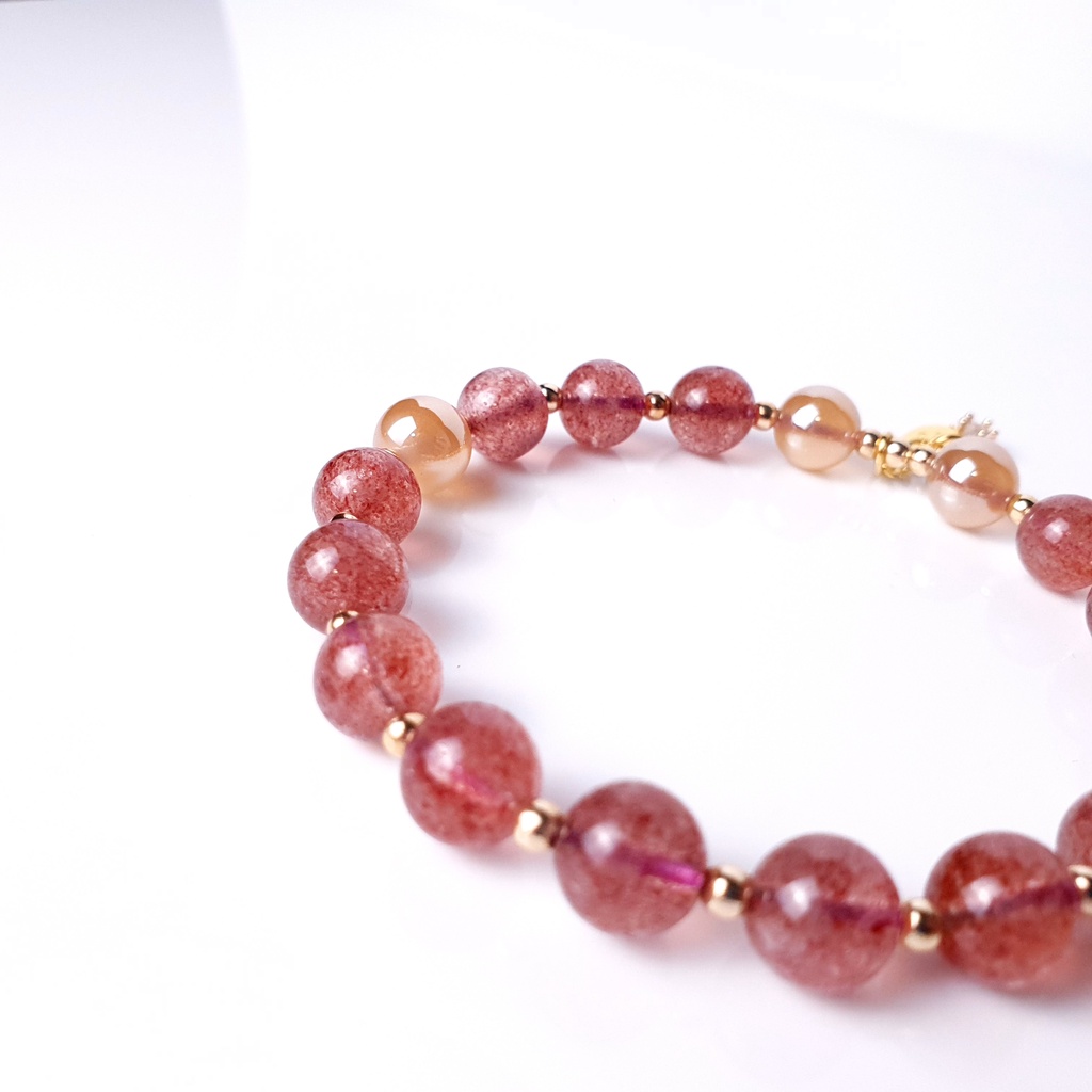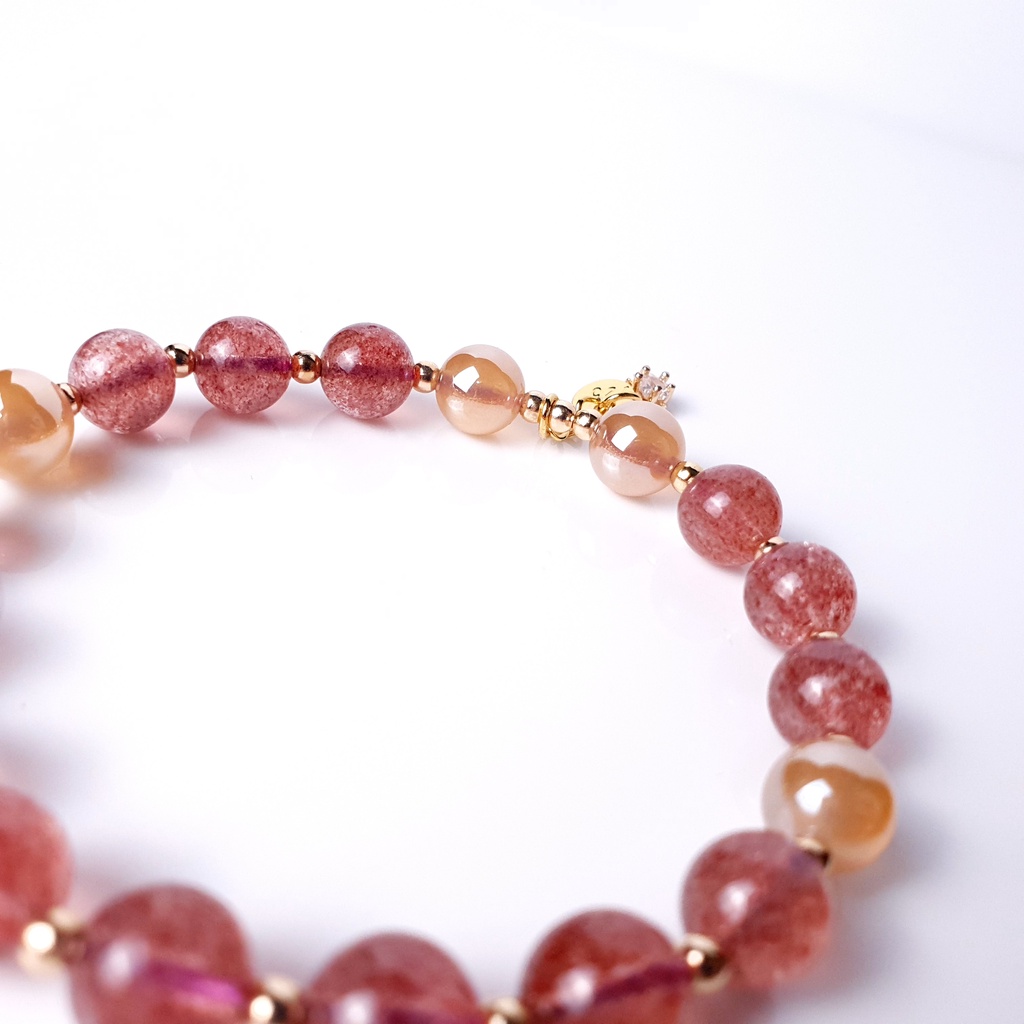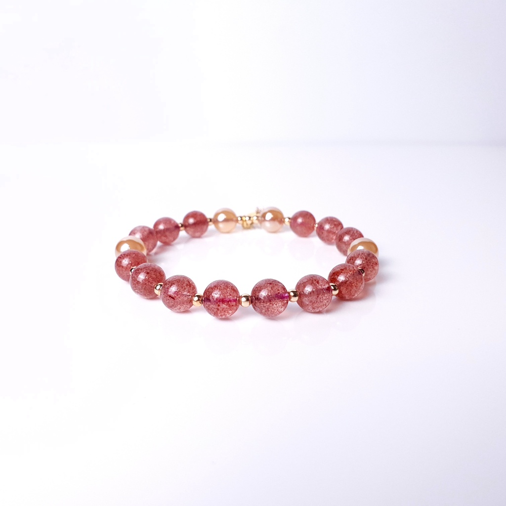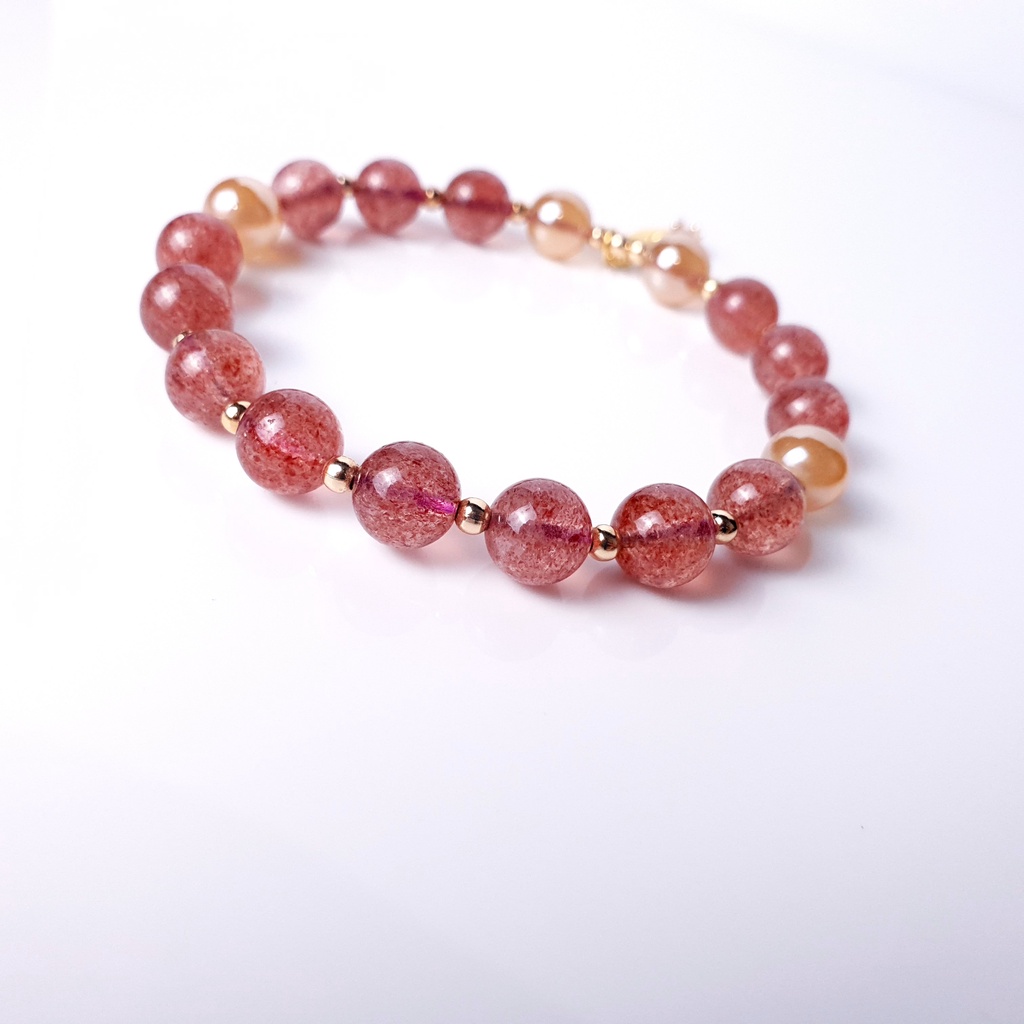 【Guardians】《雙喜》 珍珠瑪瑙 草莓晶 時尚配件 能量手鍊 925純銀 鍍14k20cm|21cm|13cm|15cm|17cm|18cm|19cm|14cm|16cm|請服貼手腕測量Guardians嚴選