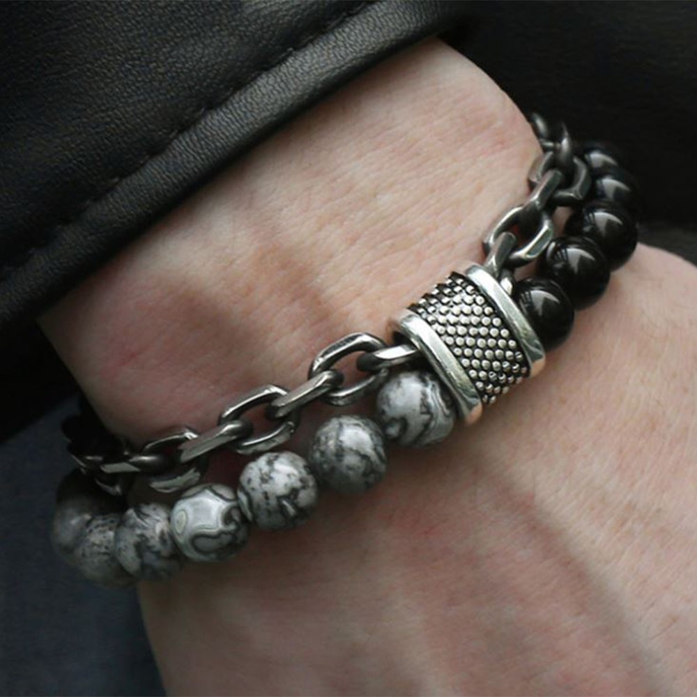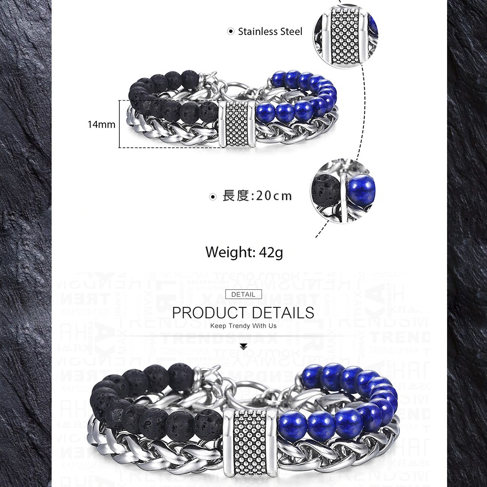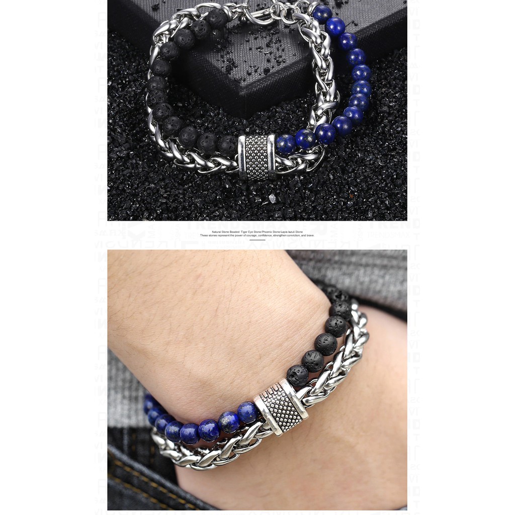 【Guardians】鈦鋼時尚珠鍊 不鏽鋼金屬/手鍊手環/歐美風/手鍊手環/金屬鍊條/串珠手環/情侶對鍊/男性配件青金石+火山石+燻黑鍊|孔雀石+火山石+燻黑鍊|白松石+黑磨砂+燻黑鍊|地圖石+黑磨砂+燻黑鍊|黑亮光+黑膽石+燻黑鍊|雪花混搭+燻黑鍊|青金石+火山石+銀麻花|虎眼+銀麻花|虎眼+黑磨砂+燻黑鍊|紅虎眼+黑磨砂+燻黑鍊Guardians嚴選