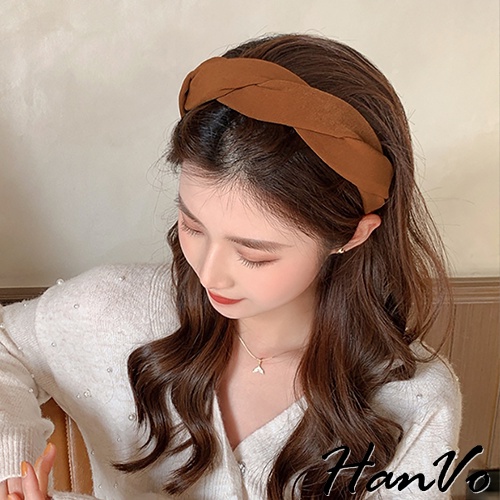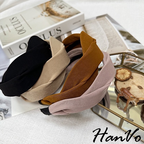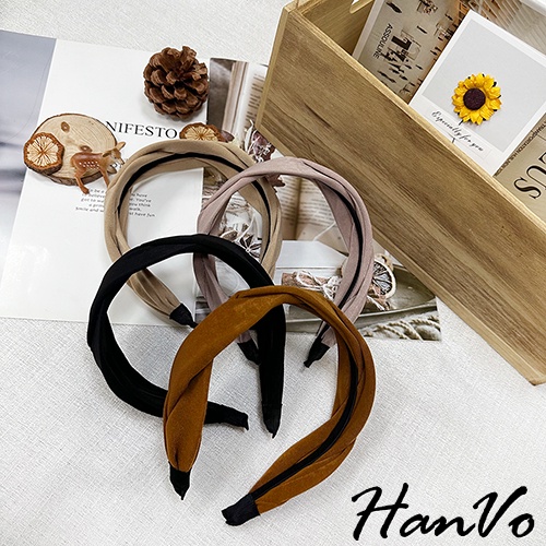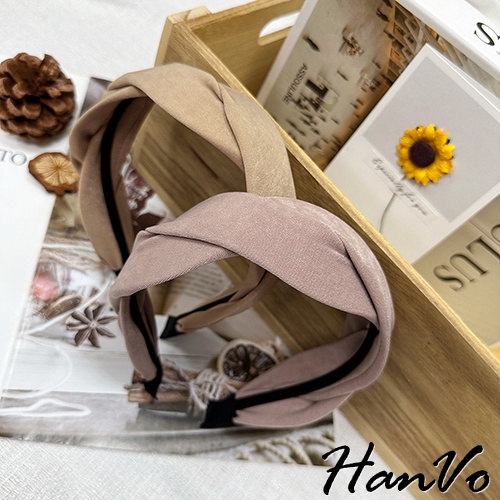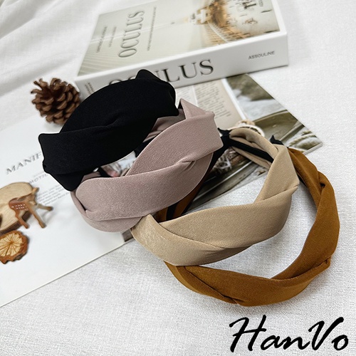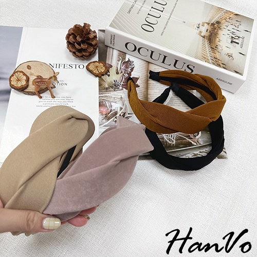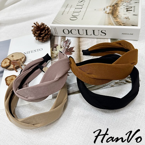 【HanVo】法式交叉麻花造型髮箍 韓國百搭簡約質感髮箍 韓系髮飾 女生配件 C03-8154黑色|奶茶|焦糖|霧粉HeadbandsHanVo Wear Collection