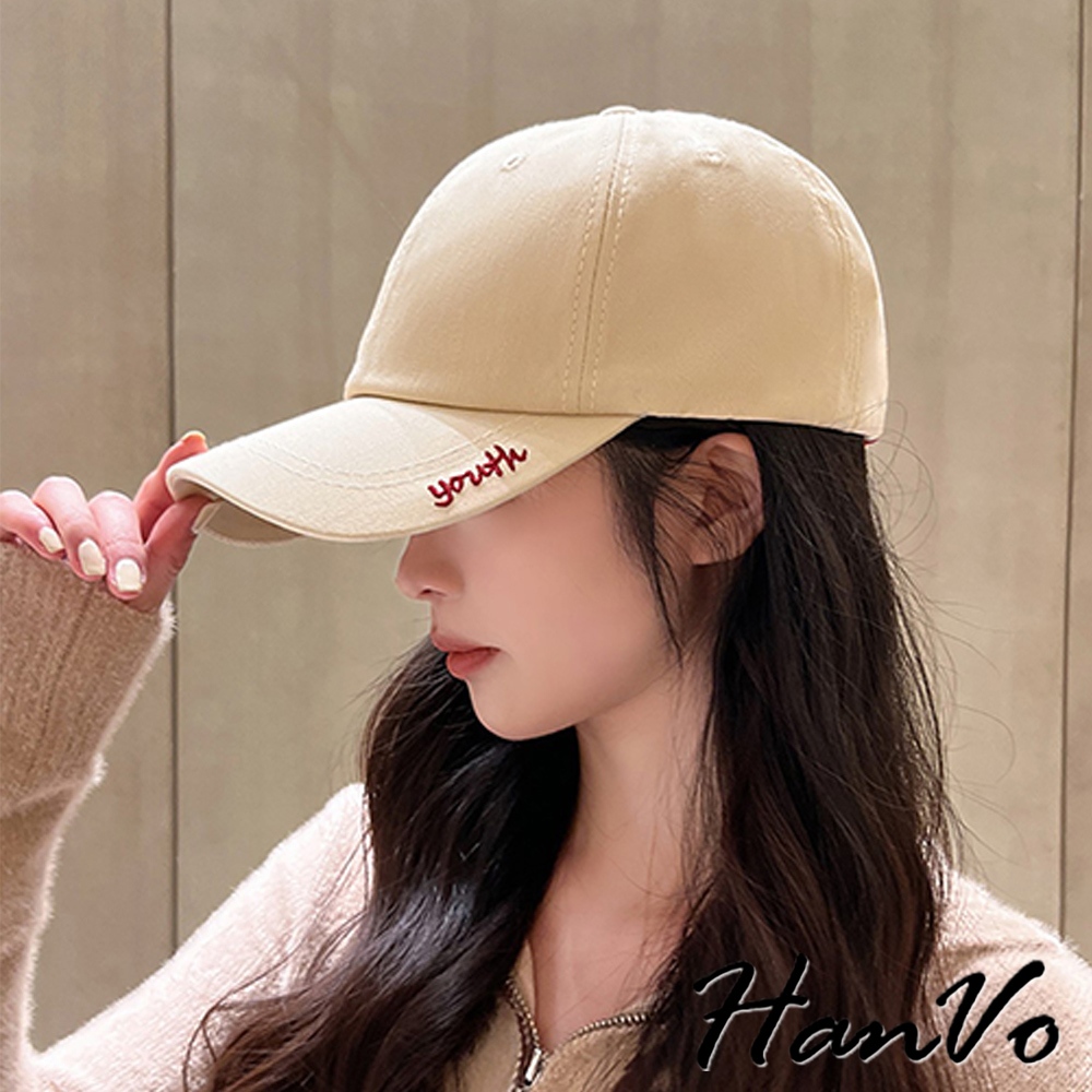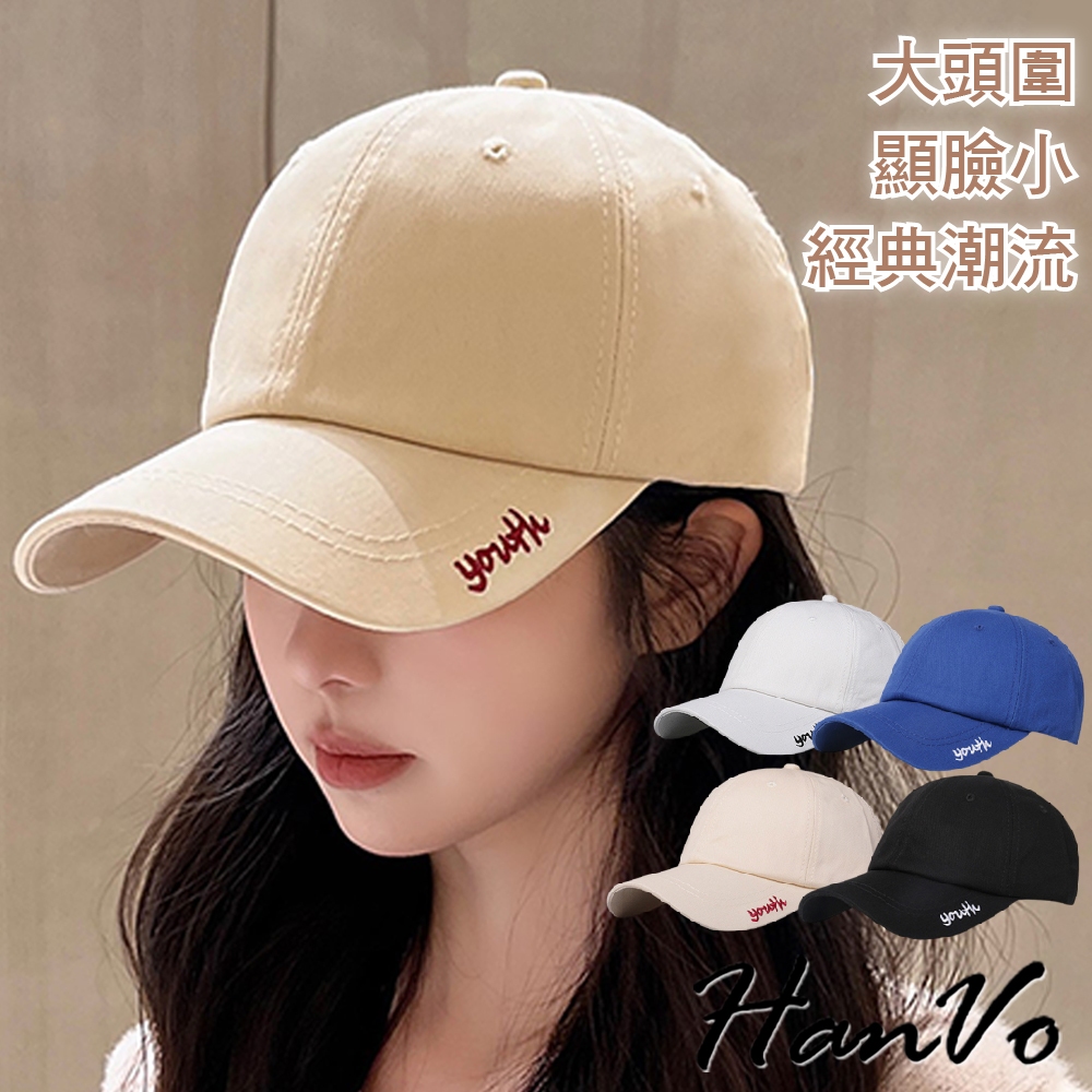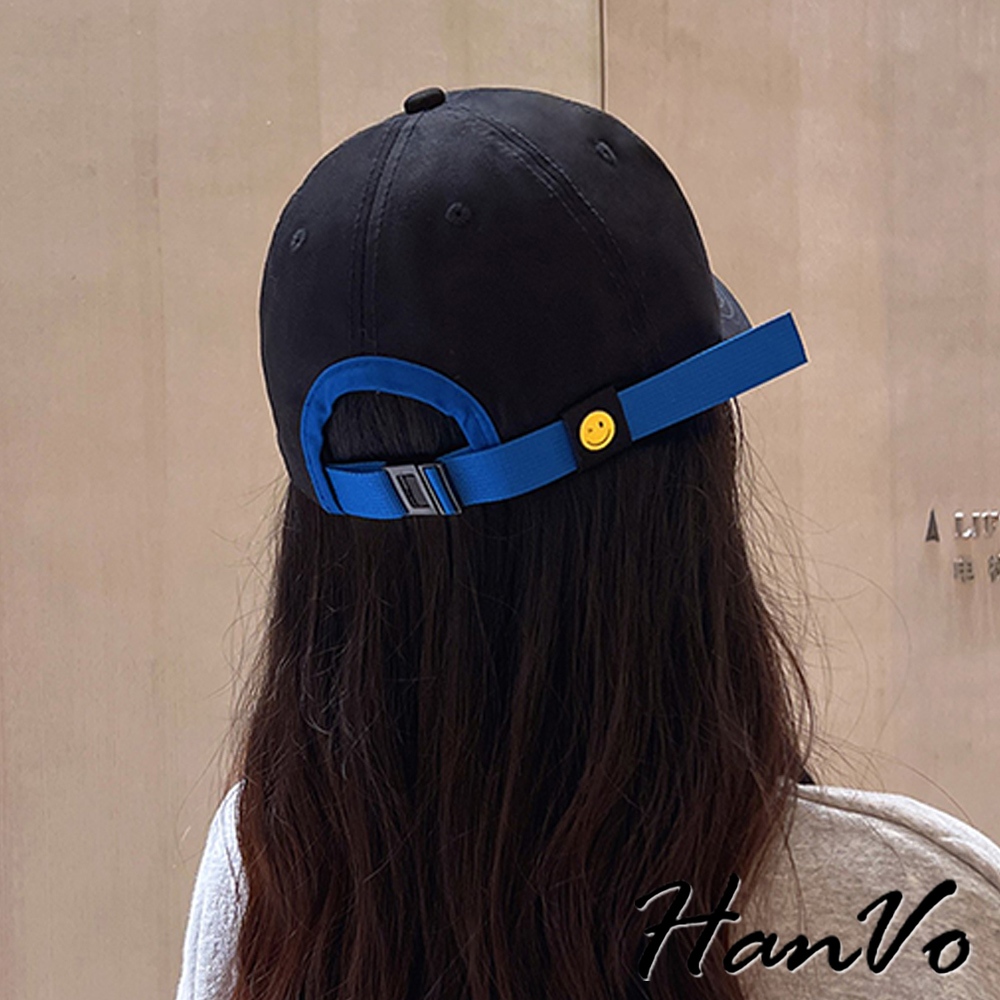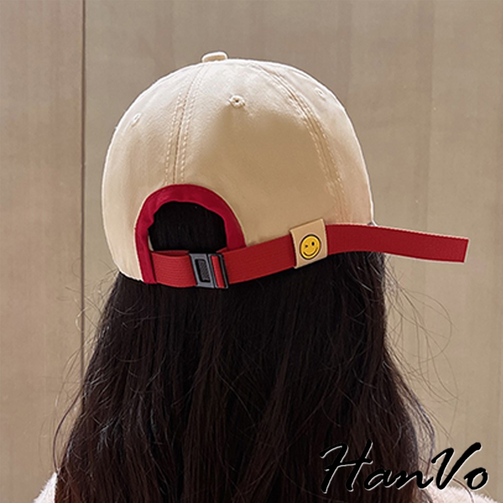 【HanVo】時尚潮流撞色笑臉印花棒球帽 大頭圍顯臉小 精緻刺繡女帽 鴨舌帽 帽子 C01-8196經典黑(頭圍56-60cm)|牛奶白(頭圍56-60cm)|克萊因藍(頭圍56-60cm)|奶茶米(頭圍56-60cm)HanVo Wear Collection