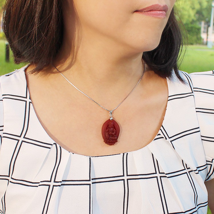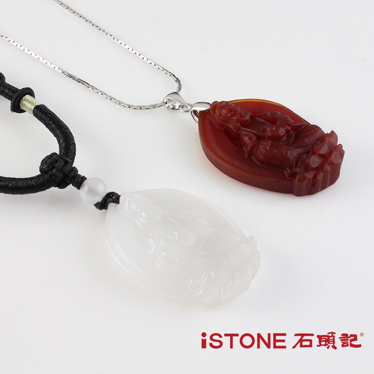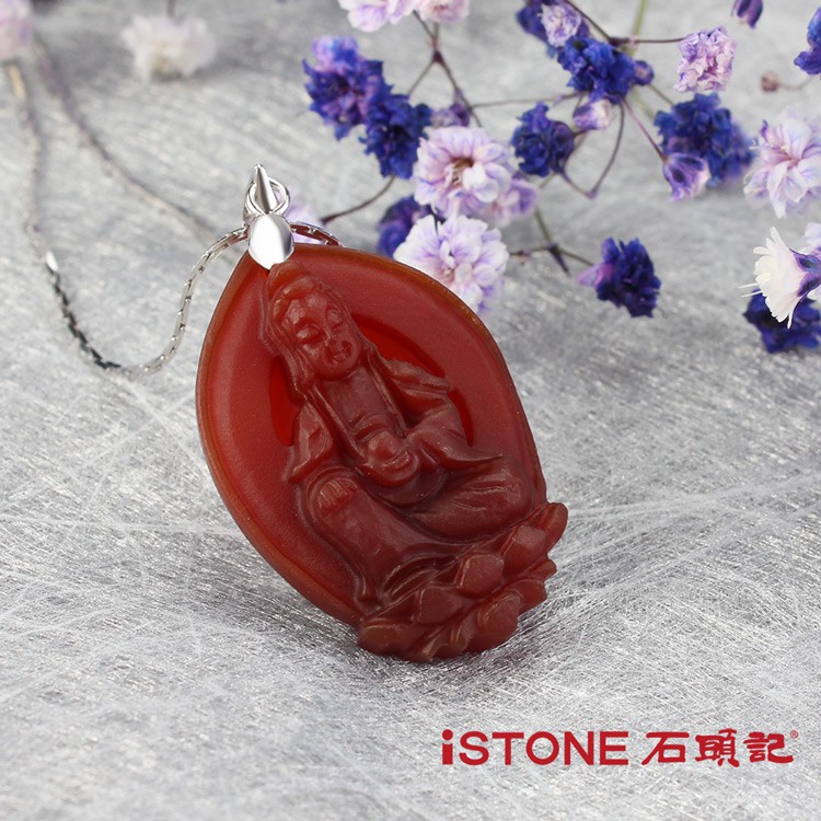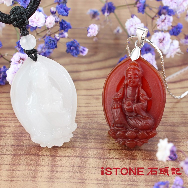 石頭記 觀音項鍊-坐蓮觀音京白玉|紅玉髓iSTONE石頭記