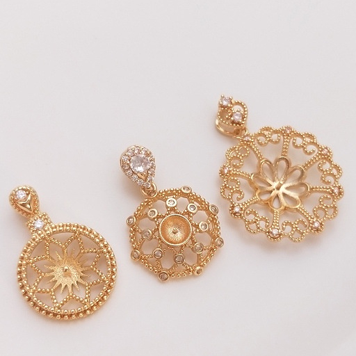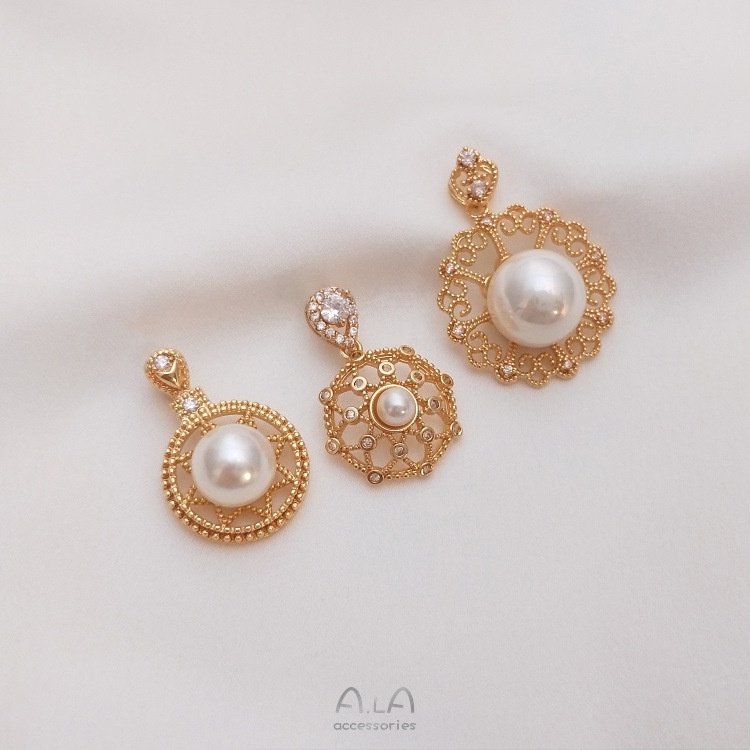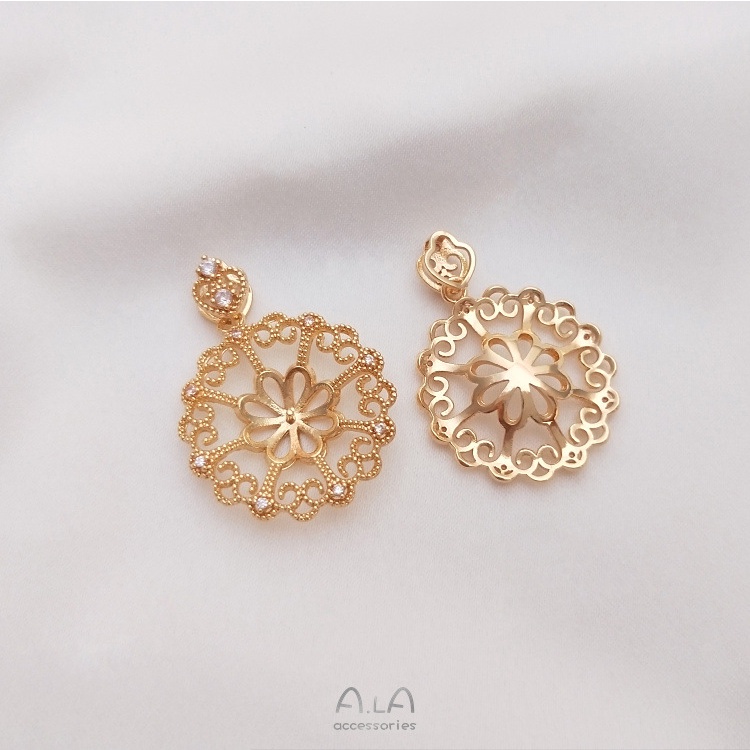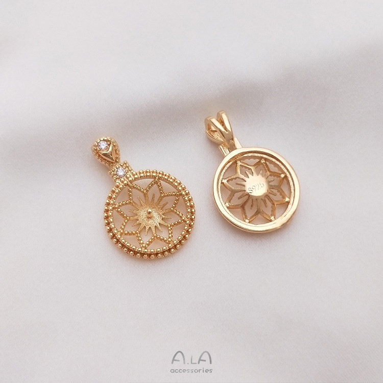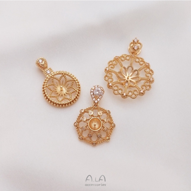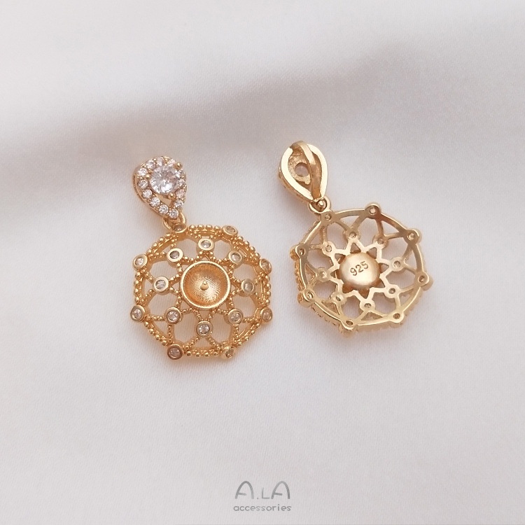 宏雲Hongyun-Ala-保色14K鍍金鋯石八芒星花邊圓形半孔珠托吊墜diy水晶珍珠項鏈空托14.5mm八角花圓形珠托吊墜 1個|20mm蕾絲邊圓形珠托吊墜 1個|15mm芒星圓形珠托吊墜 1個HongYun飾品配件批發零售