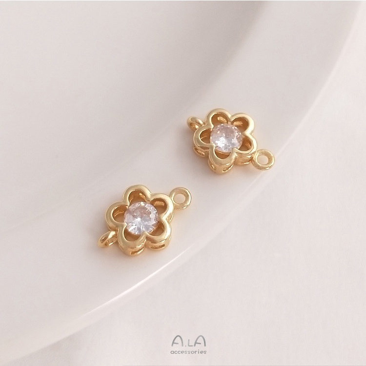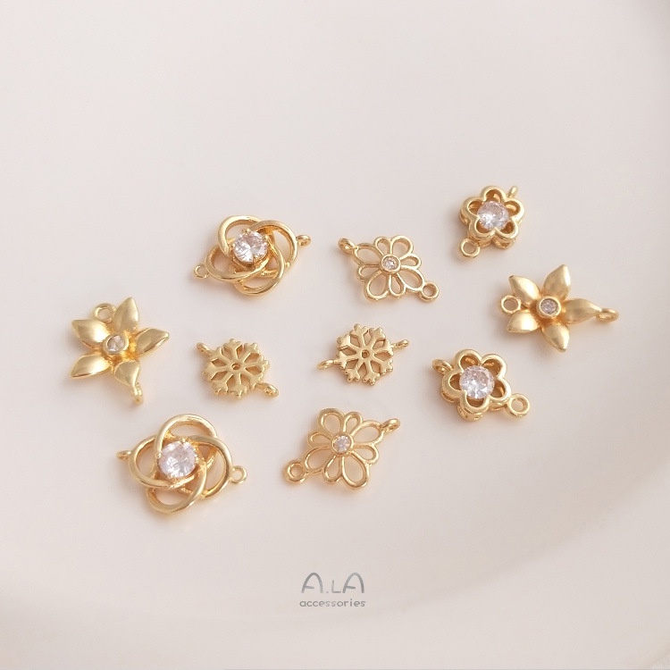 宏雲Hongyun-Ala-保色14K鍍金鋯石雪花梅花小花雙吊連接件吊墜手鏈項鏈手工diy配件雙吊五瓣花15x11mm 1個|雙吊四環花15x11mm 1個|雙吊蕾絲花13.5×9.5mm 1個|雙吊中國結11×6.5mm 1個|雙吊雪花11x8mm 1個|雙吊梅花12x8mm 1個|雙吊鏤空花14x10mm 1個HongYun飾品配件批發零售