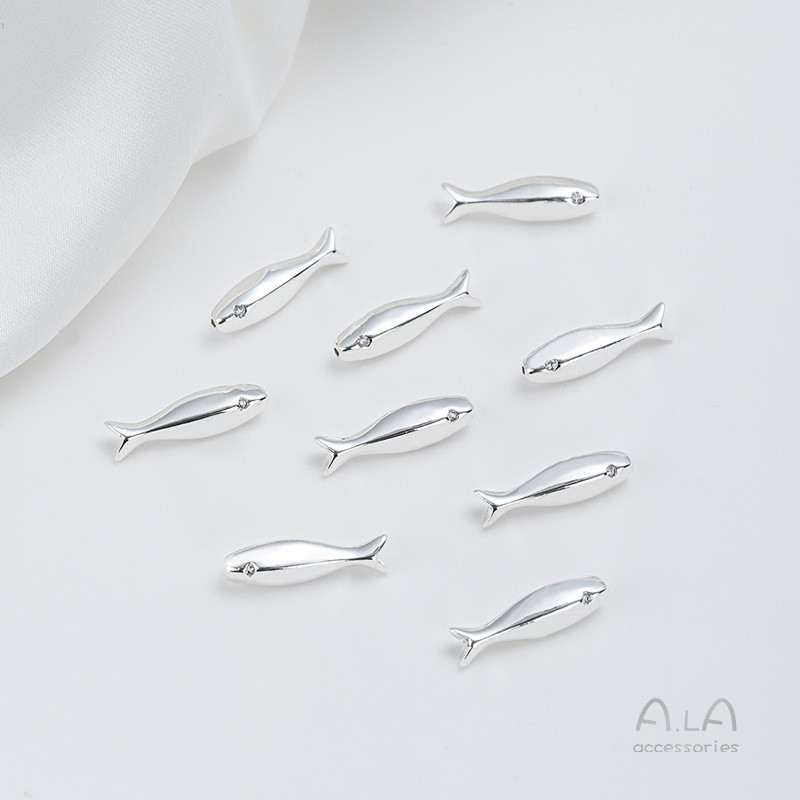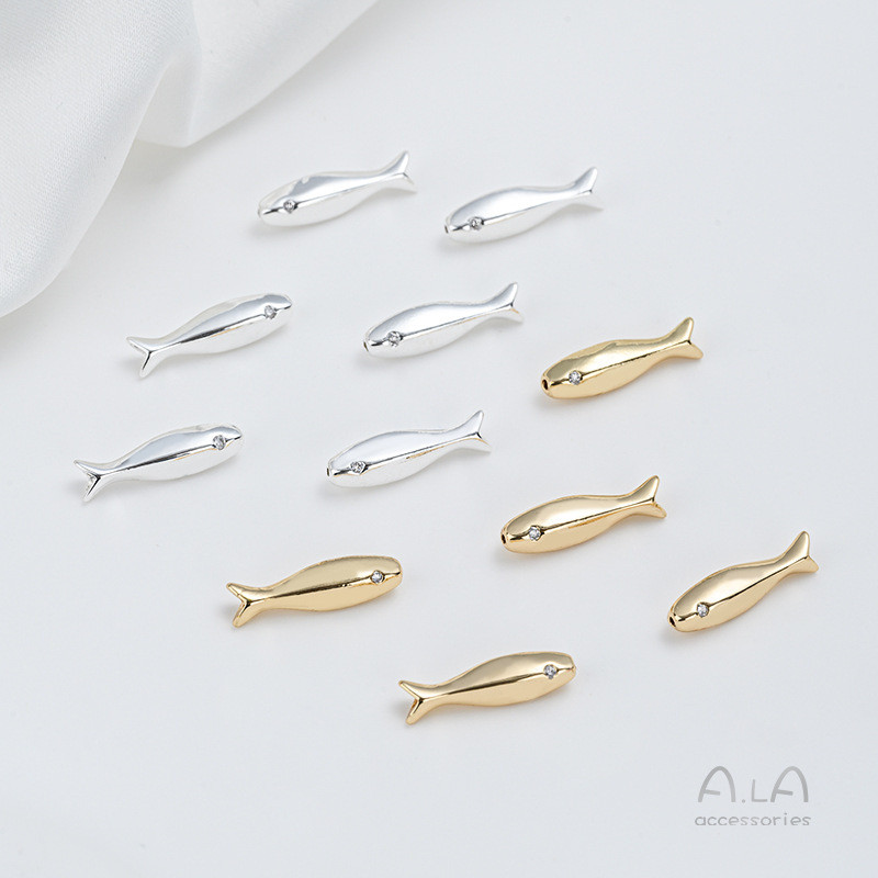 宏雲Hongyun-Ala新品-强保色14K包金厚銀鋯石小魚隔珠學生錦鋰上岸桶珠diy手作串珠配件14K包金鋯眼小魚1個|亮銀色鋯眼小魚1個HongYun飾品配件批發零售