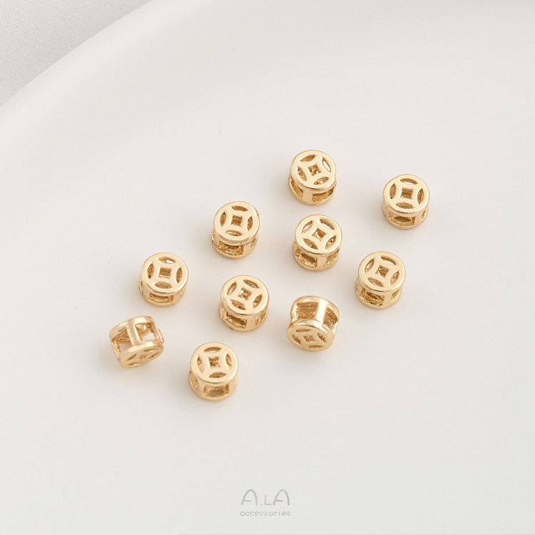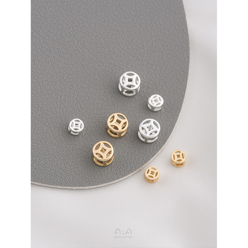 宏雲Hongyun-ala- 14K包金厚銀保色鏤空大孔珠手鍊編織皮繩隔珠手工diy串珠配件14K包金 铜钱隔珠6mm 1个|14K包金 铜钱隔珠4mm 1个|包厚银 铜钱隔珠4mm 1个|包厚银 铜钱隔珠6mm 1个Charms, Pendants & OrnamentsHongYun飾品配件批發零售