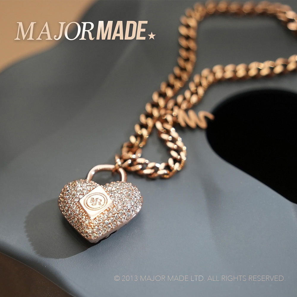 【MAJOR MADE】愛心水鑽鎖頭M項鍊玫瑰金,FMAJOR MADE