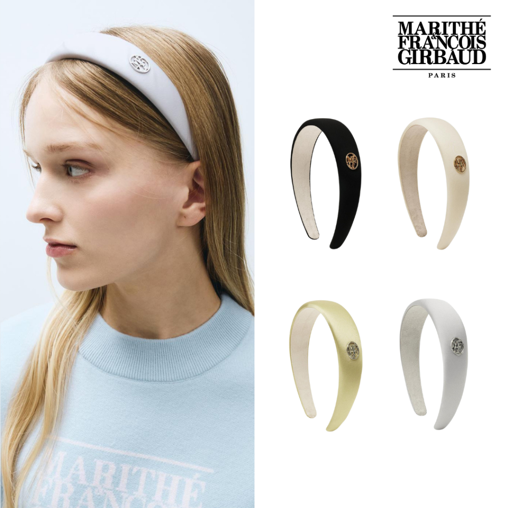 【MARITHE FRANCOIS GIRBAUD】圓形金屬LOGO 緞面髮箍 韓星同款黑色|象牙白|淺薄荷綠|銀色HeadbandsMARITHÉ FRANҪOIS GIRBAUD 官方旗艦店