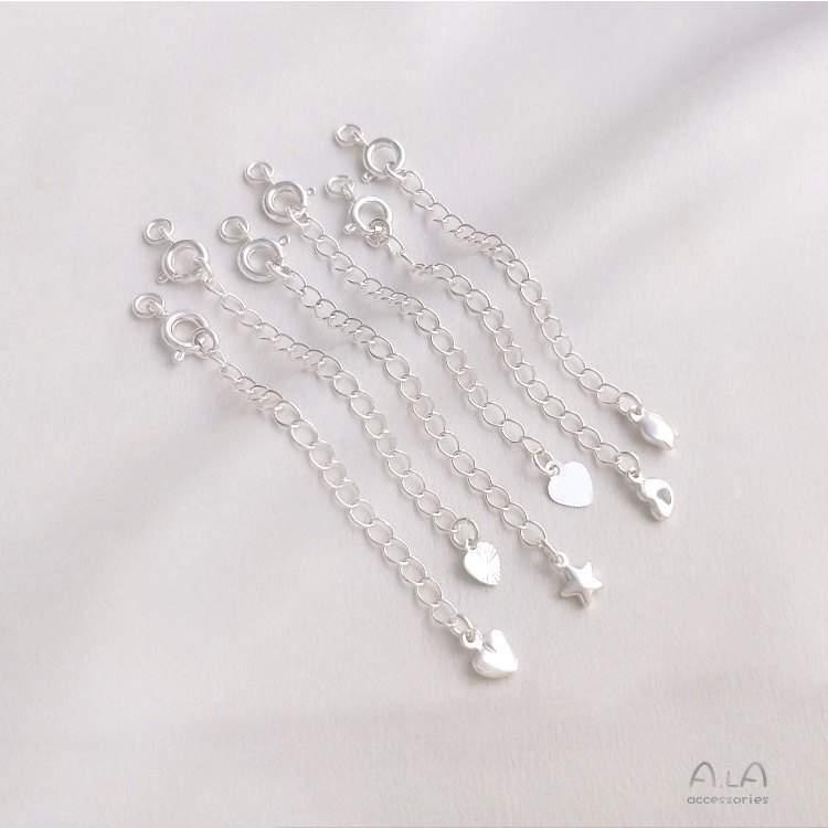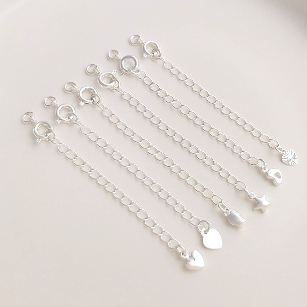 宏雲Hongyun-Ala–銀色彈簧扣尾鏈銅鍍厚銀保色延長鏈diy手鏈項鏈收尾扣加長鏈配件心形片款 銀色彈簧扣尾鏈1條|批花心形 銀色彈簧扣尾鏈1條|鏤空心形 銀色彈簧扣尾鏈1條|立體心形 銀色彈簧扣尾鏈1條|花苞款 銀色彈簧扣尾鏈1條|五角星 銀色彈簧扣尾鏈1條HongYun飾品配件批發零售