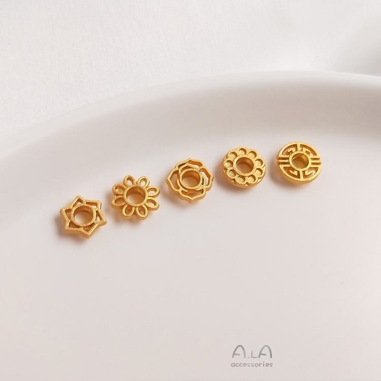 宏雲Hongyun-xs–14K包金保色雙層皇冠花托五朵花環隔珠項鍊串珠資料diy飾品配件14k色,6.5mm鏤空皇冠雙層花托|14k色,8.5mm五朵花環隔珠|白銀色,6.5mm鏤空皇冠雙層花托|白銀色,8.5mm五朵花環隔珠HongYun飾品配件批發零售