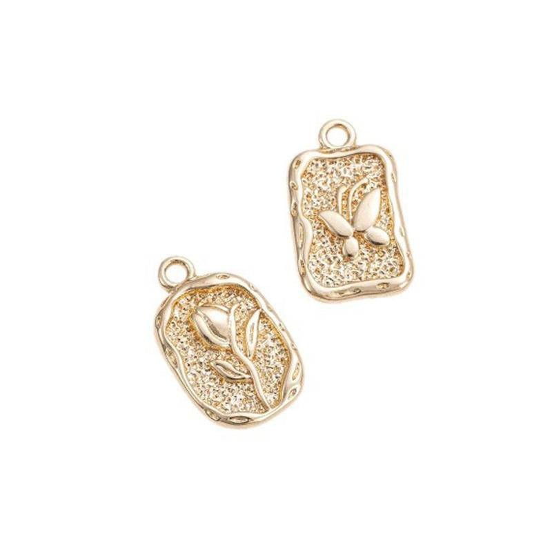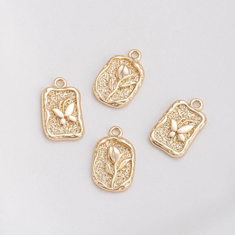 宏雲Hongyun-Ala新品-14k包金保色不規則長方牌橢圓牌浮雕蝴蝶玫瑰花吊墜手工飾品掛件蝴蝶長方牌8.5x14mm|玫瑰花橢圓牌9x15mmHongYun飾品配件批發零售