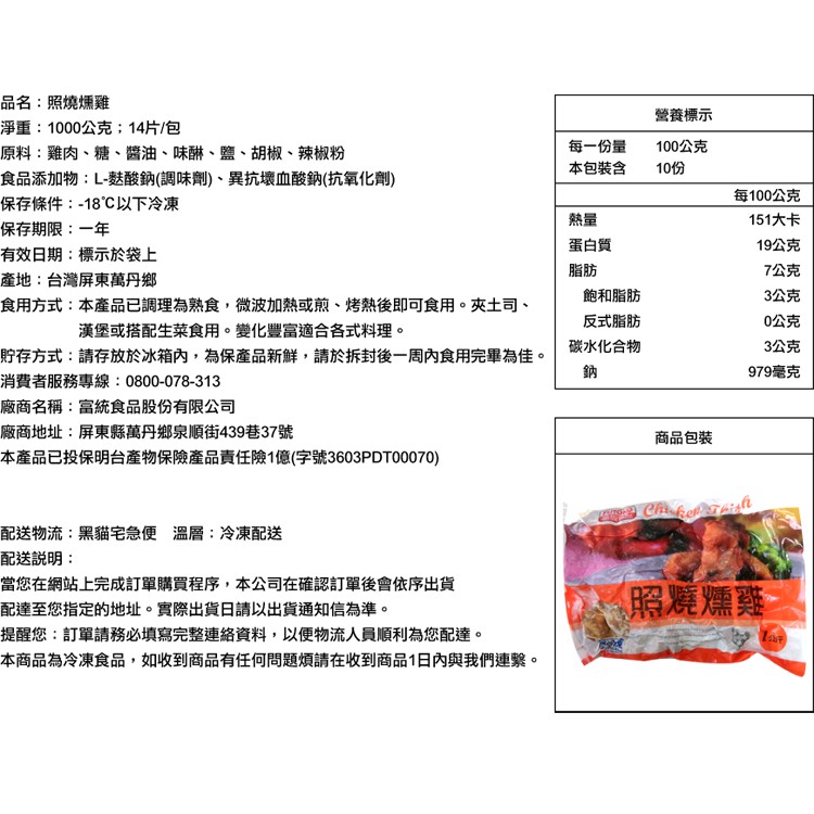 【富統食品】照燒燻雞腿排1KG(14片)1包MeatFUTONG富統食品官方網路商店