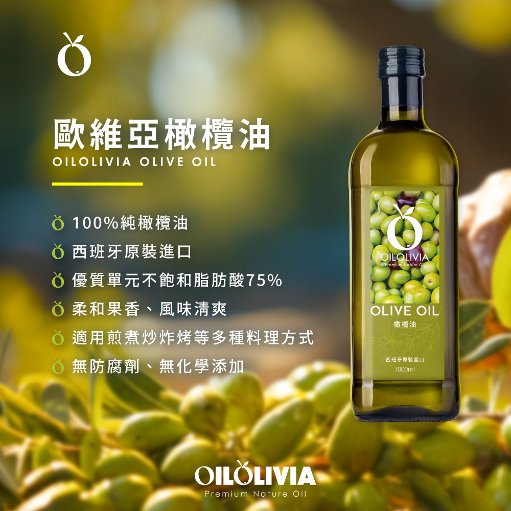 【OilOlivia 歐維亞】西班牙100%純橄欖油 原瓶進口(1000ml*1/3/4入)1入|3入(特價中)|4入OilGoodSome 陳桑灶咖|滿福實業