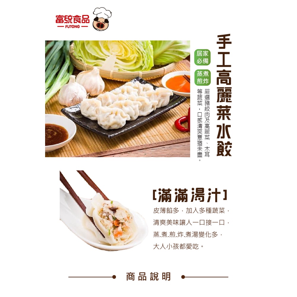 【富統食品】手工高麗菜水餃1100g/袋;約50顆【富統食品】手工高麗菜水餃1100g/袋;約50顆Frozen Processed FoodFUTONG富統食品官方網路商店